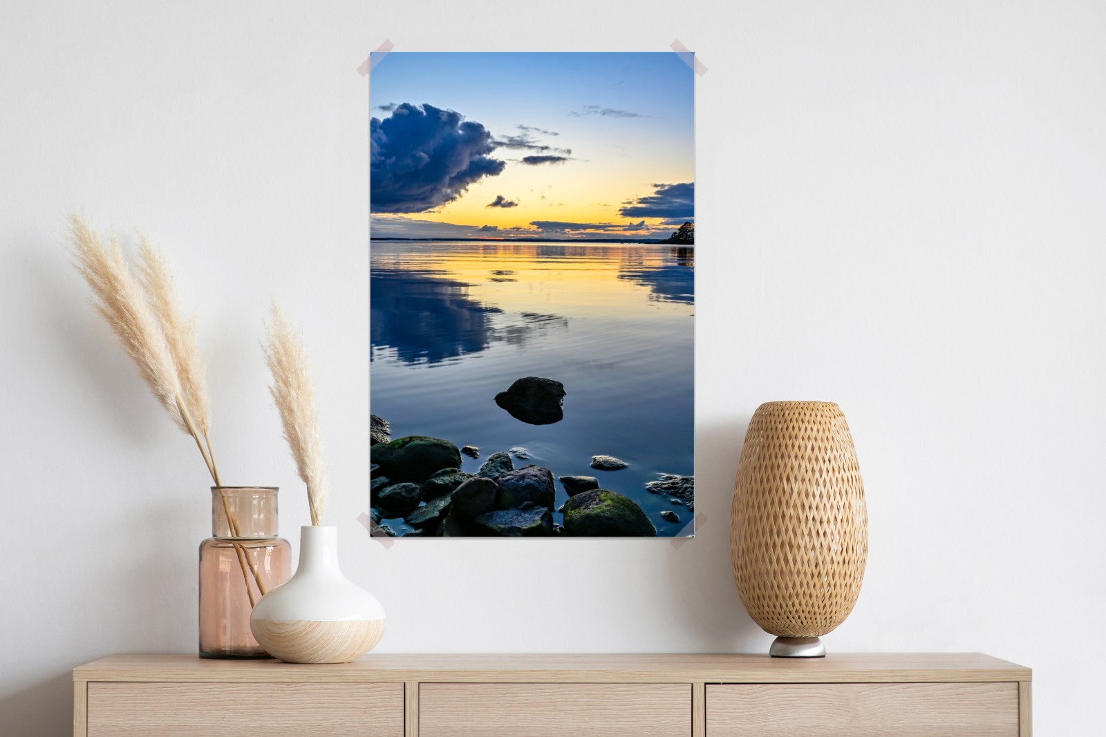 Plakat Spokojne nadmorskie odbicie zachodu słońca