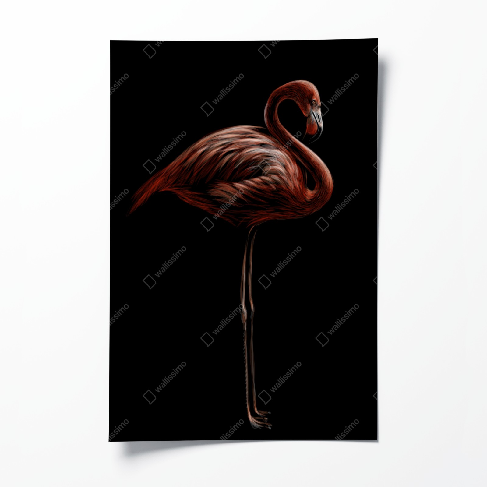 Plakat elegancki czerwony flaming na czarnym tle – Wallissimo®