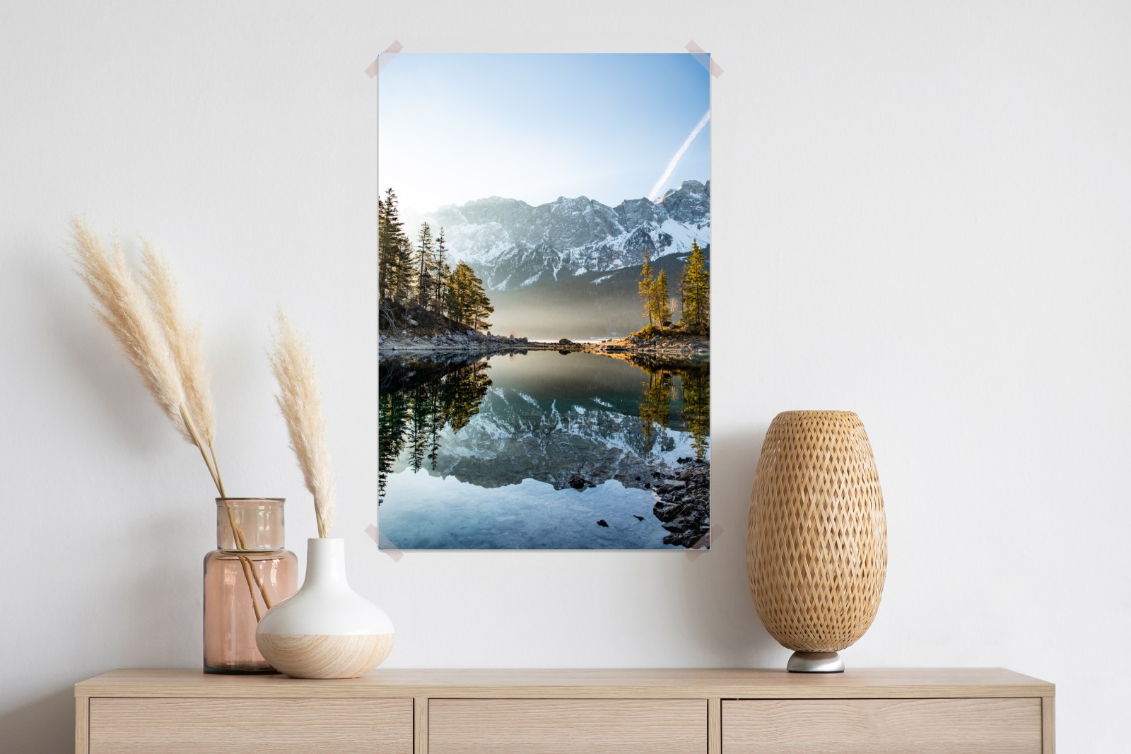 Plakat odbicie górskie na jeziorze o poranku – Wallissimo®