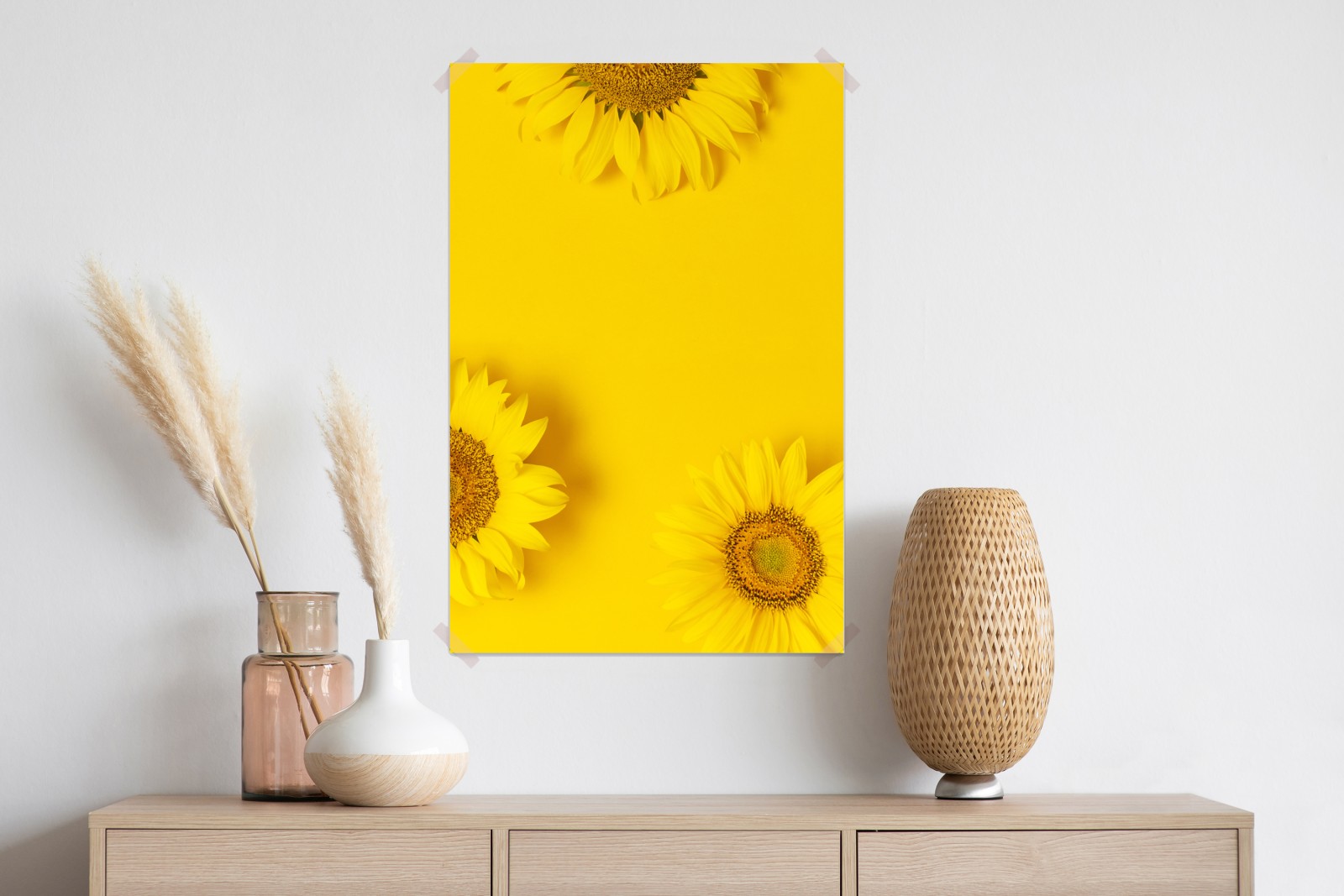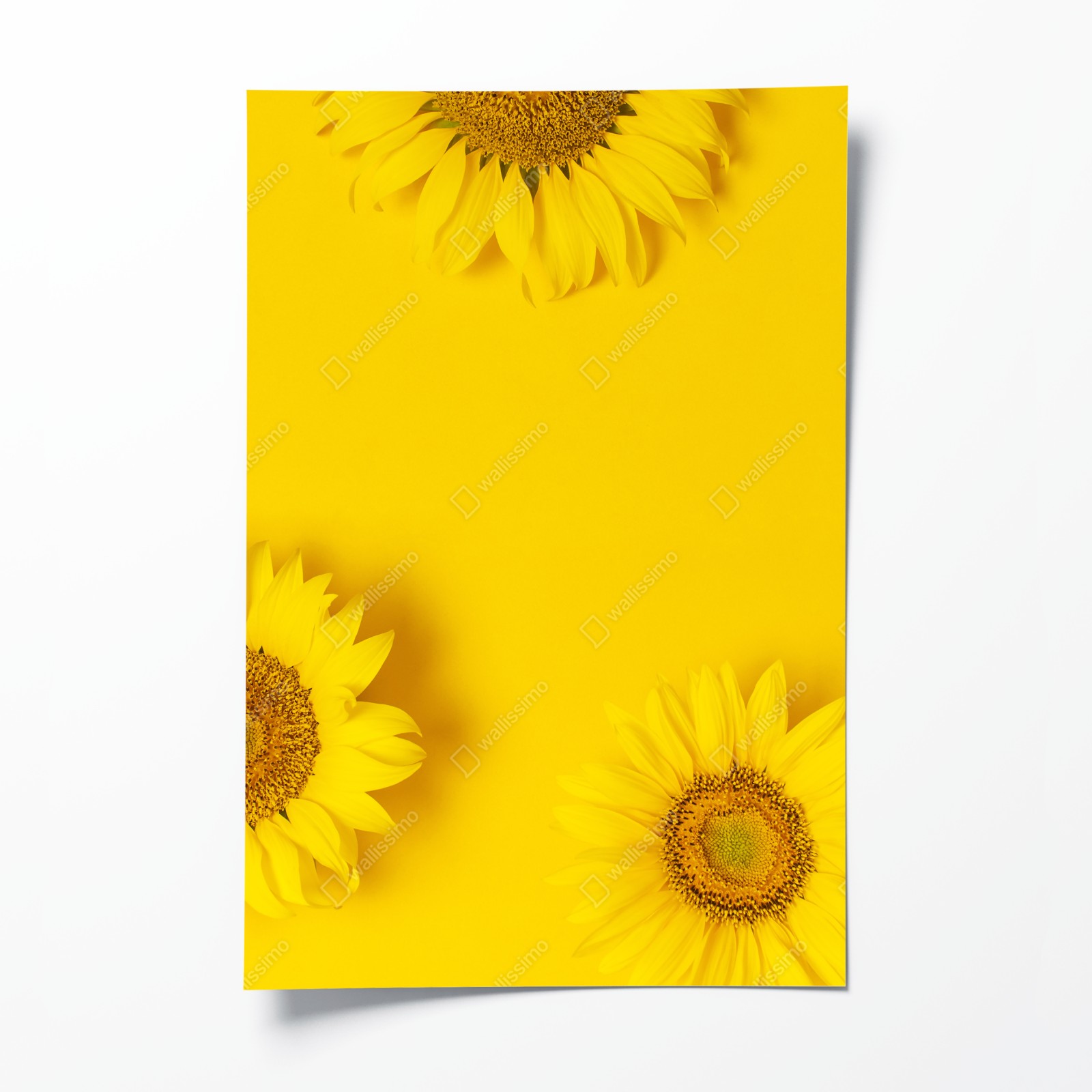 Rozjaśnij swoją przestrzeń radosnym zbliżeniem słoneczników na intensywnym żółtym tle, idealnym do wprowadzenia ciepła i minimalistycznego charakteru do każdego wnętrza.