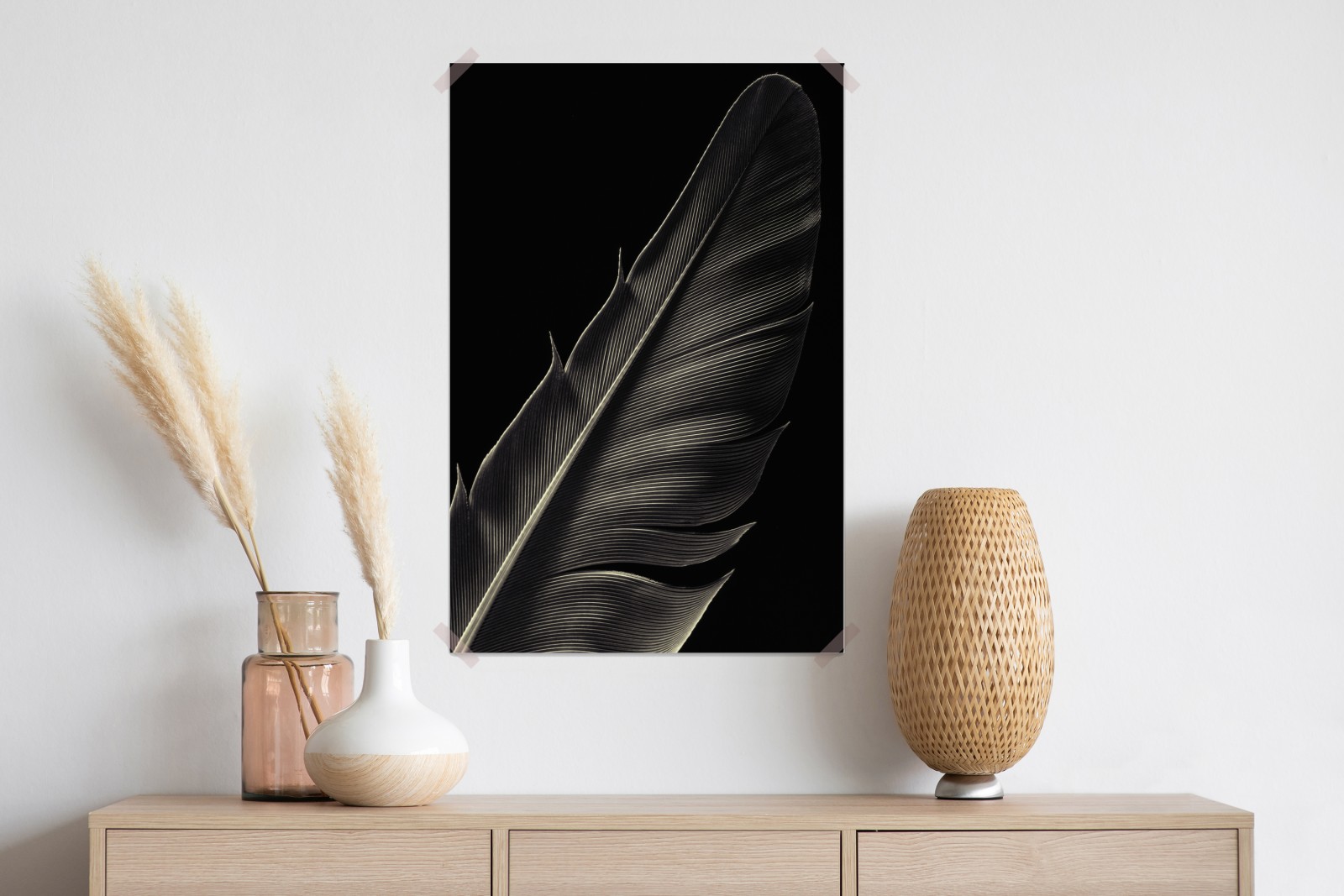 Eleganckie monochromatyczne zdjęcie pióra dodaje minimalistycznego, naturalnego uroku każdemu wnętrzu.