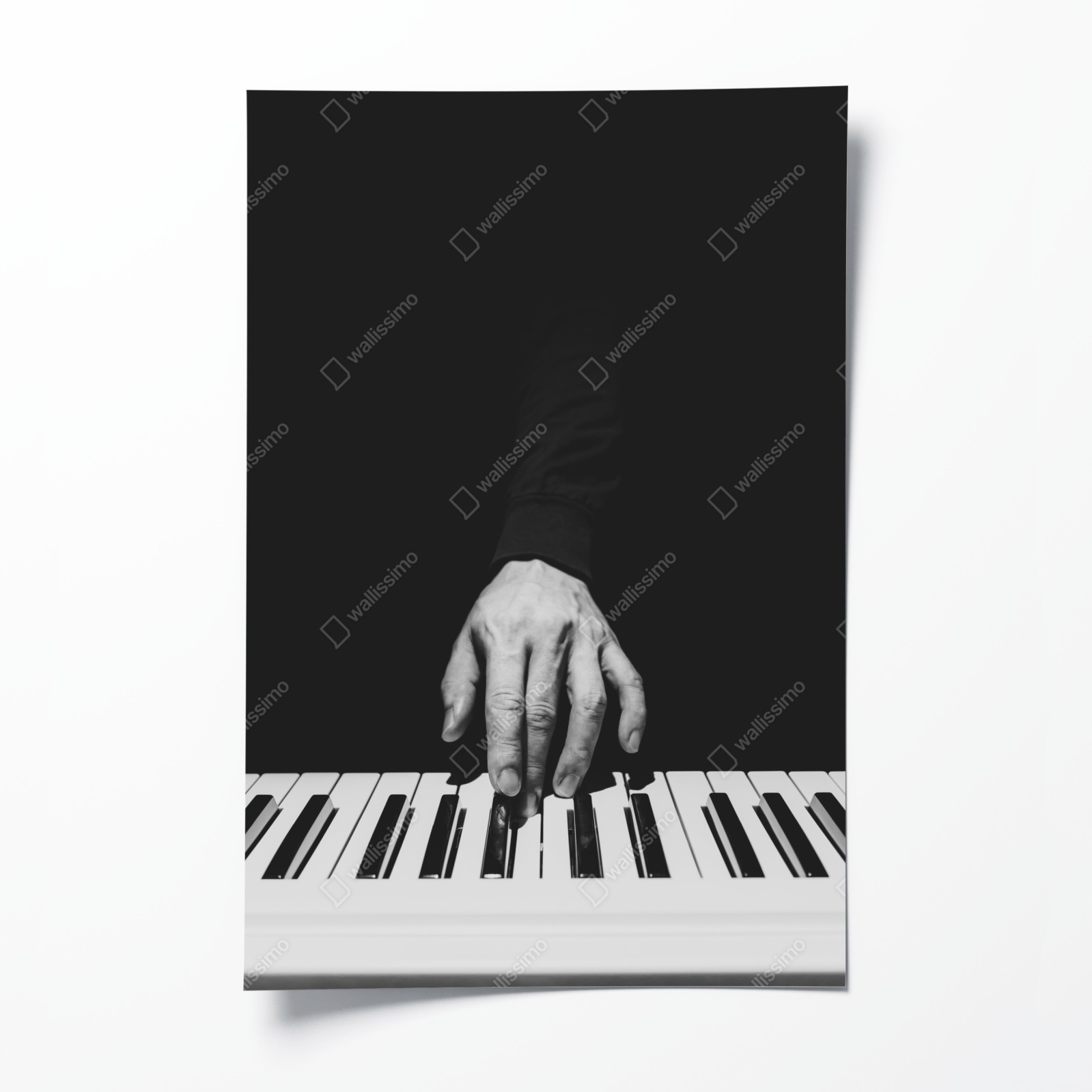 Dodaj wyraziste, monochromatyczne akcenty do wnętrza dzięki minimalistycznemu zbliżeniu ręki pianisty na klawiaturze.