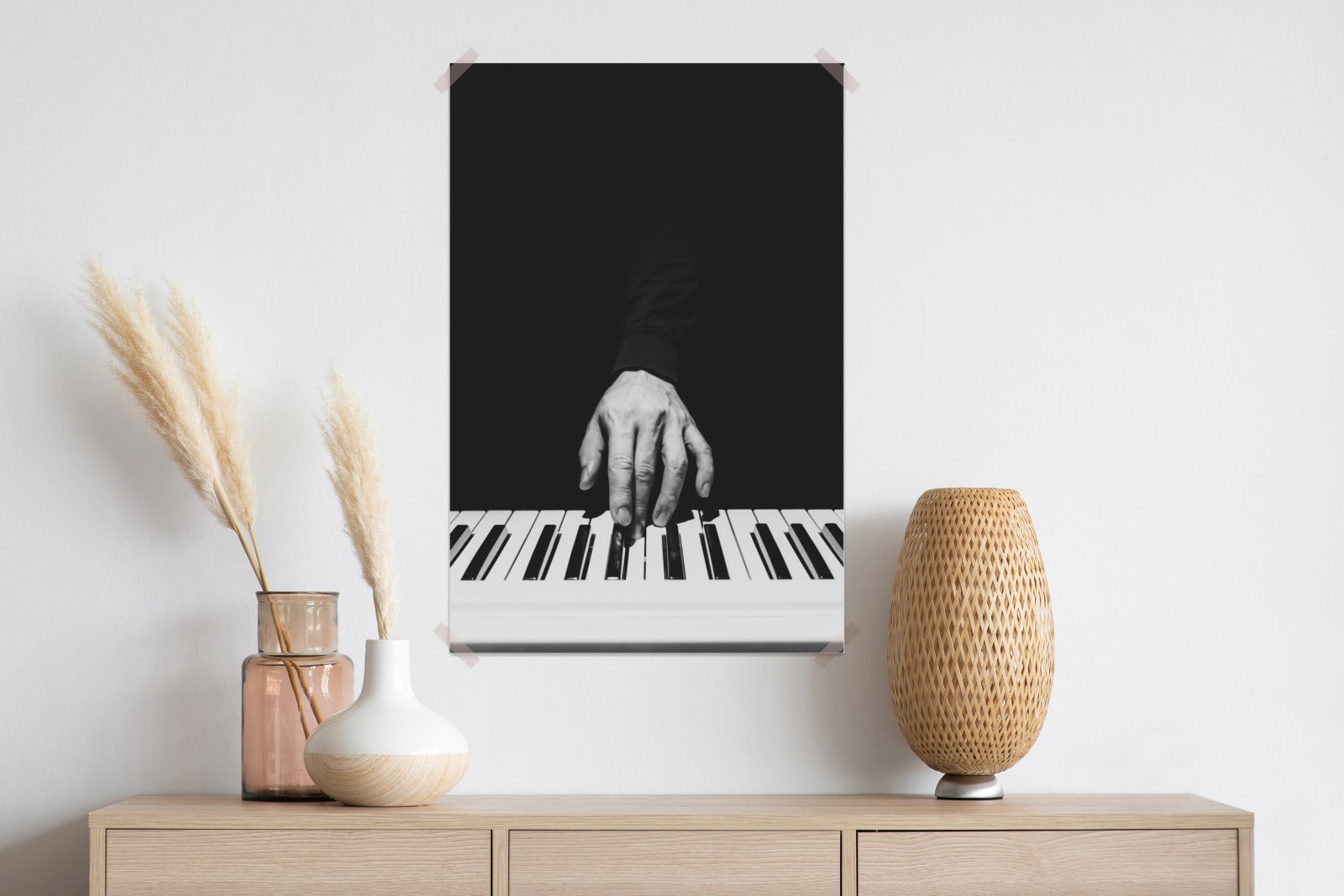 Plakat Monochromatyczne zbliżenie ręki przy pianinie