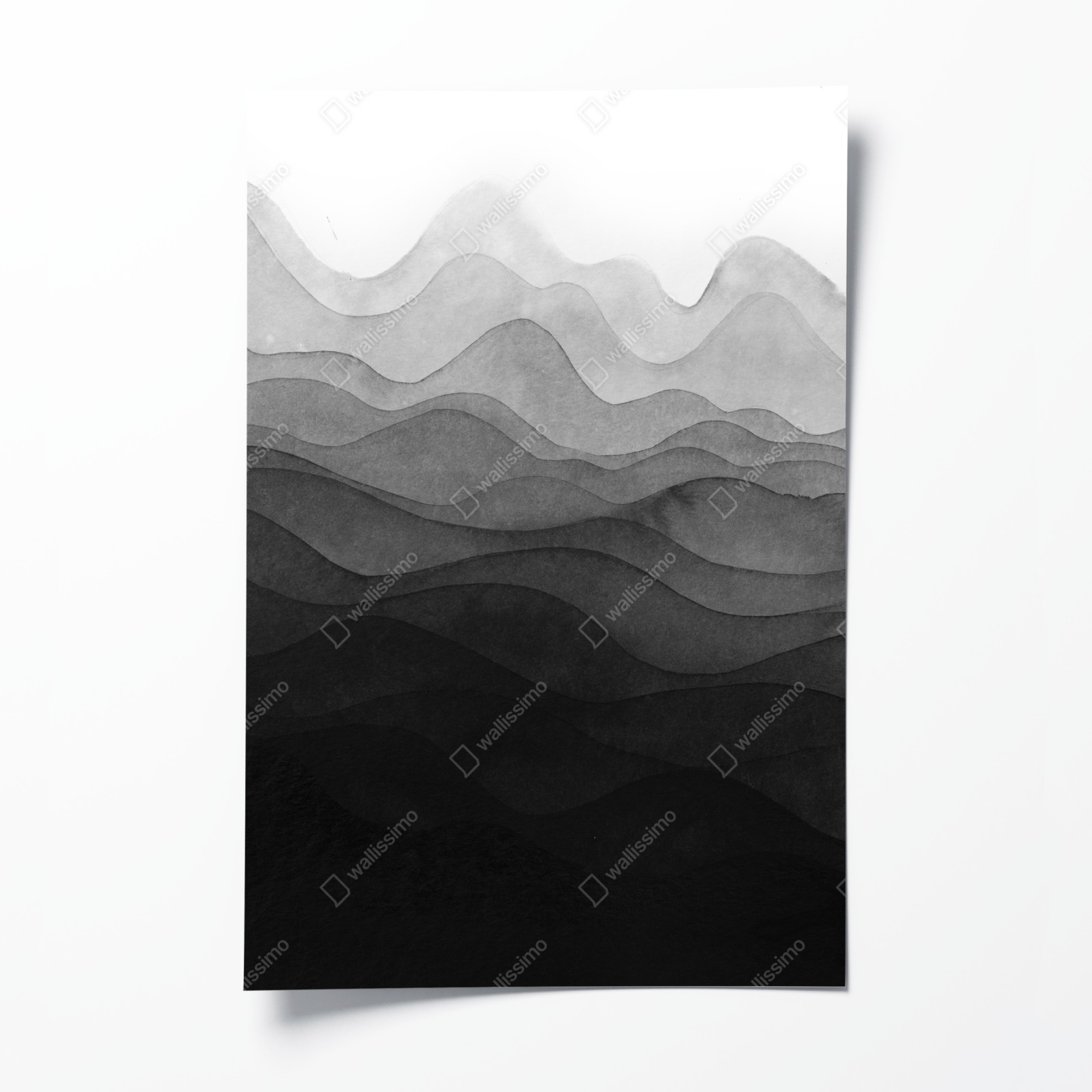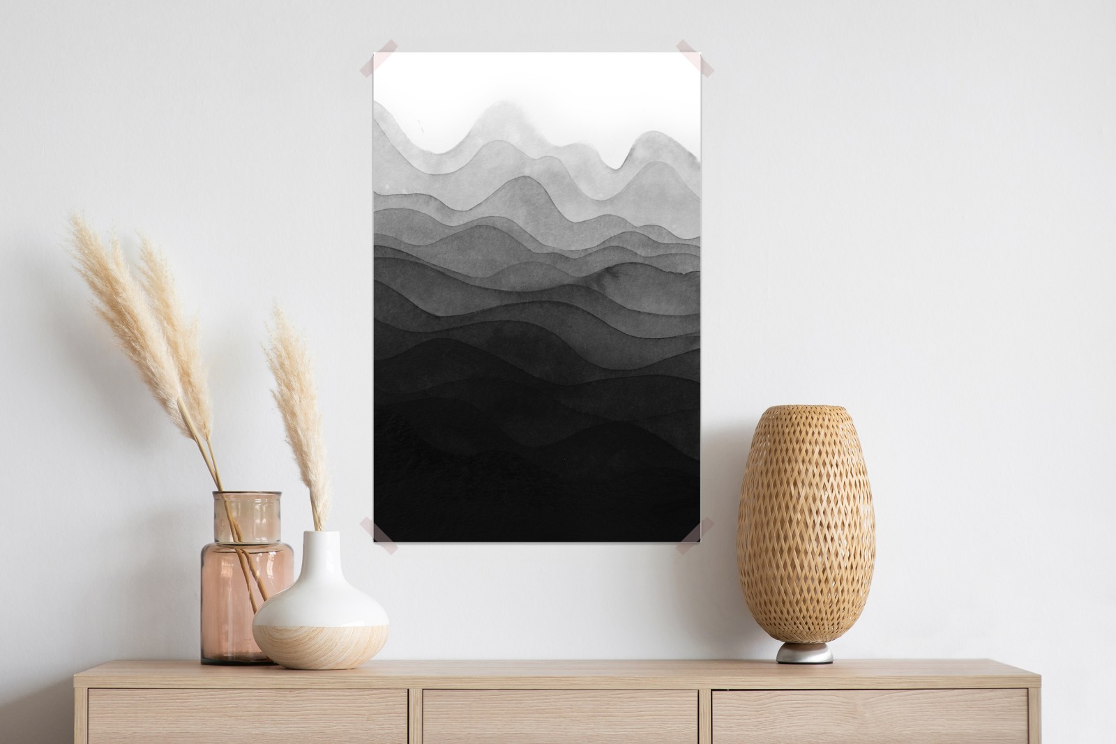 Dodaj spokojny akcent do wnętrza dzięki tej monochromatycznej, warstwowej kompozycji górskiej idealnej do minimalistycznych przestrzeni.