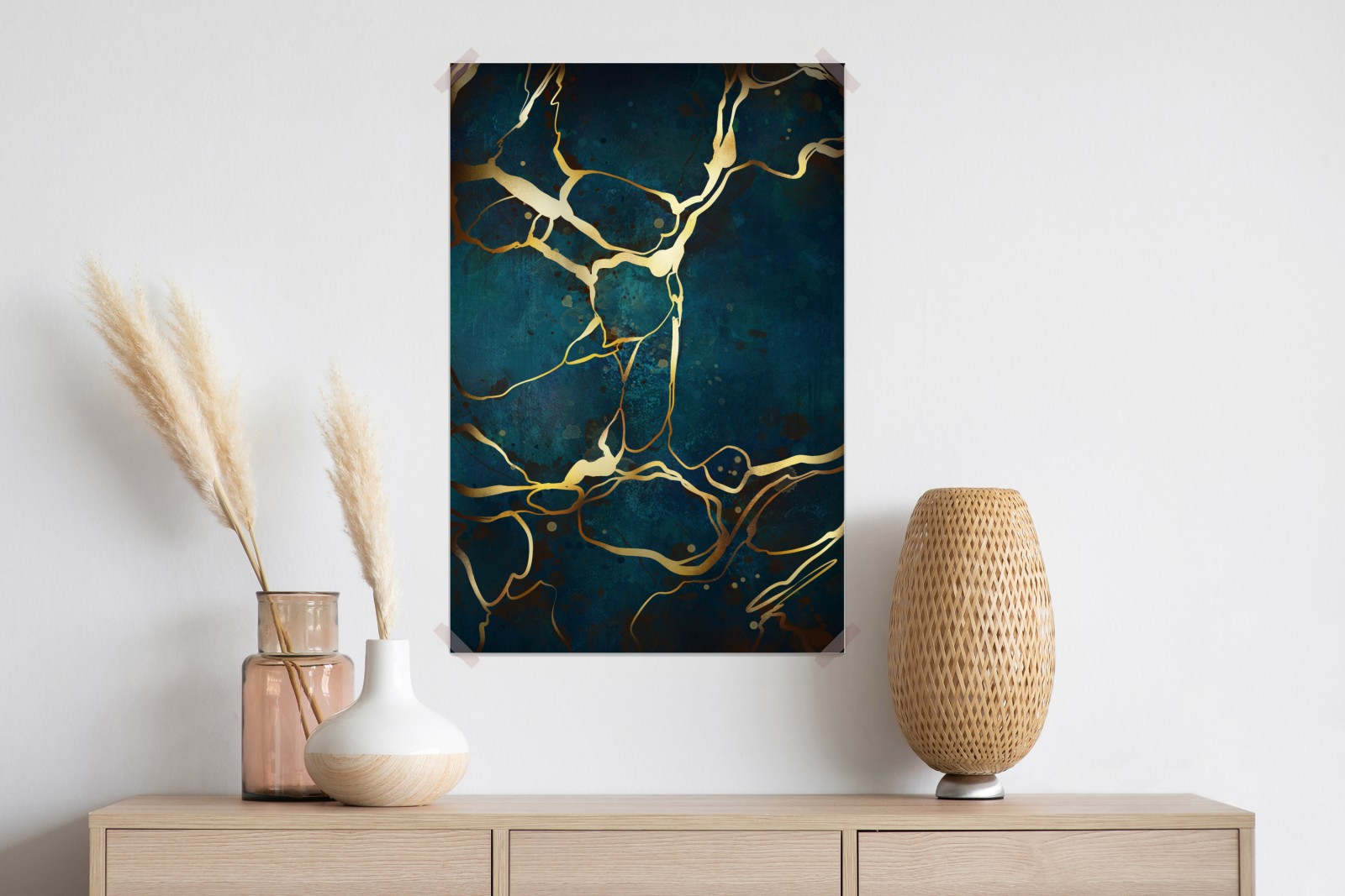 Plakat Turkusowo-złota abstrakcja ze złotymi żyłami