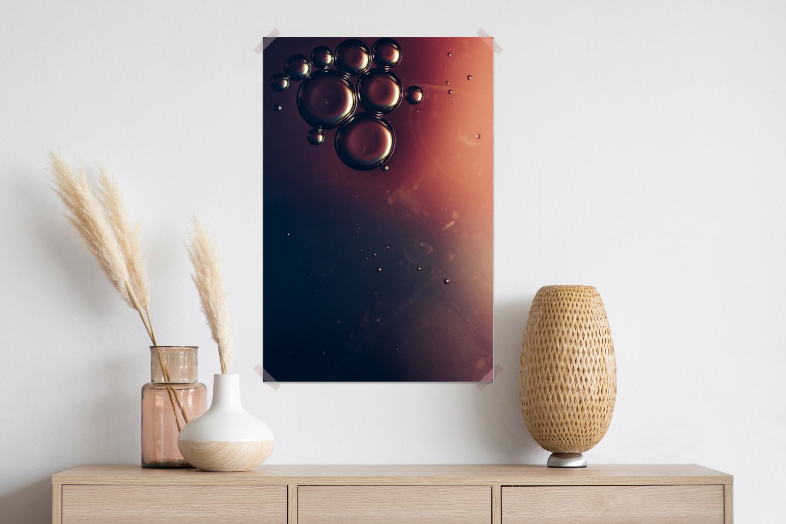 Plakat Unoszące się pęcherzyki oleju na głębokim gradiencie