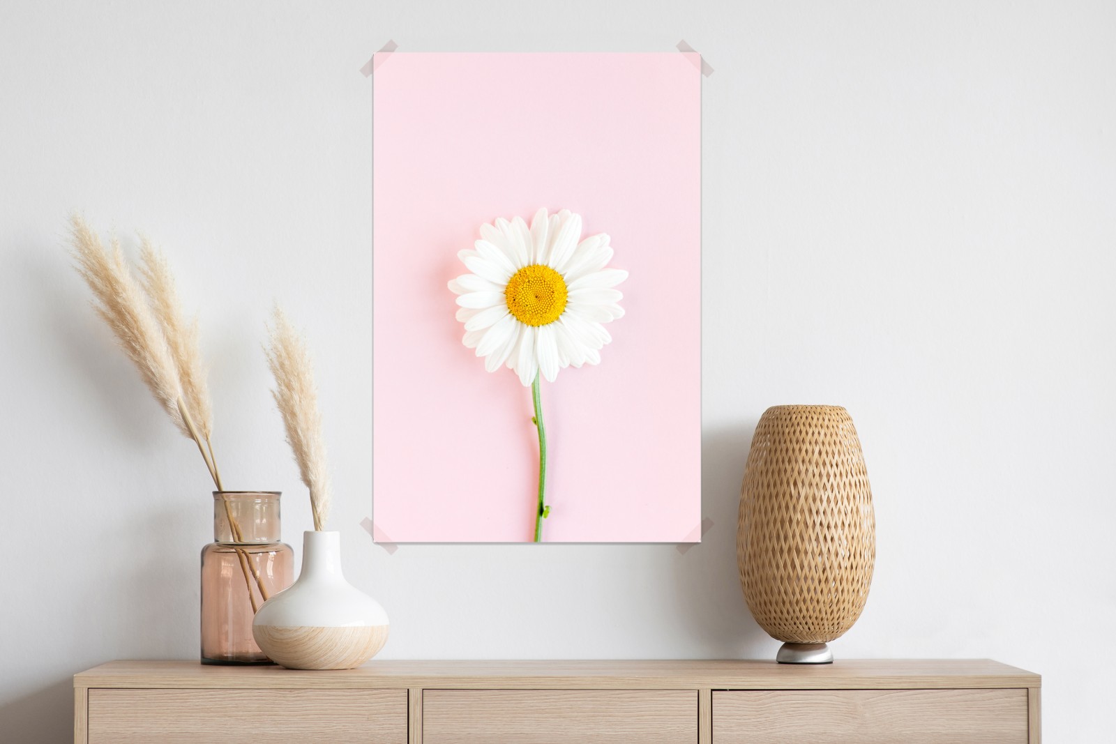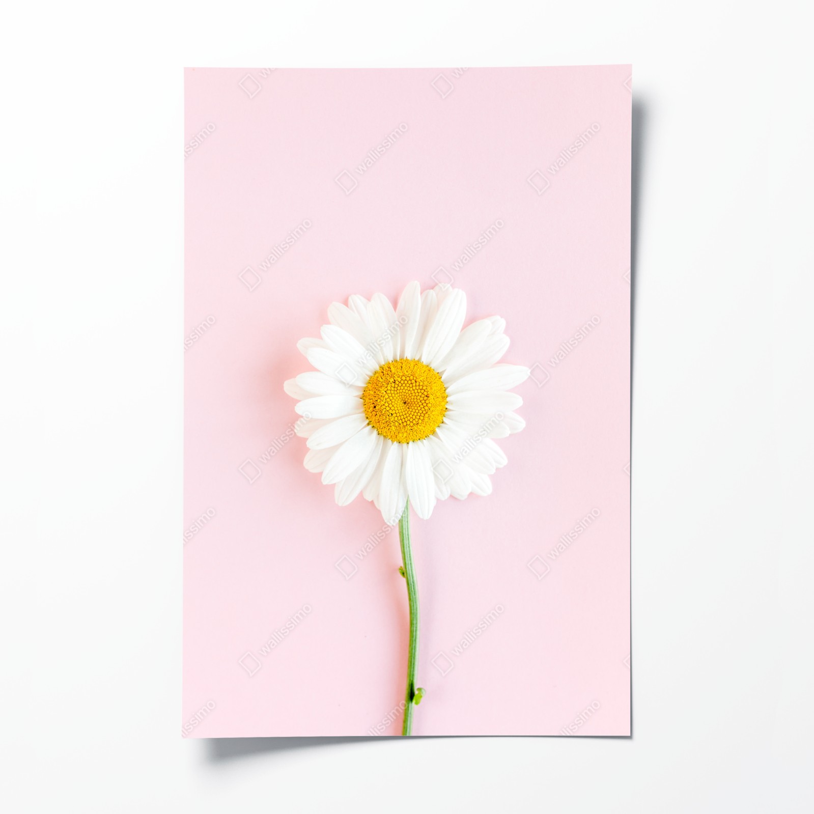 Plakat biała stokrotka na pastelowym różowym tle – Wallissimo®