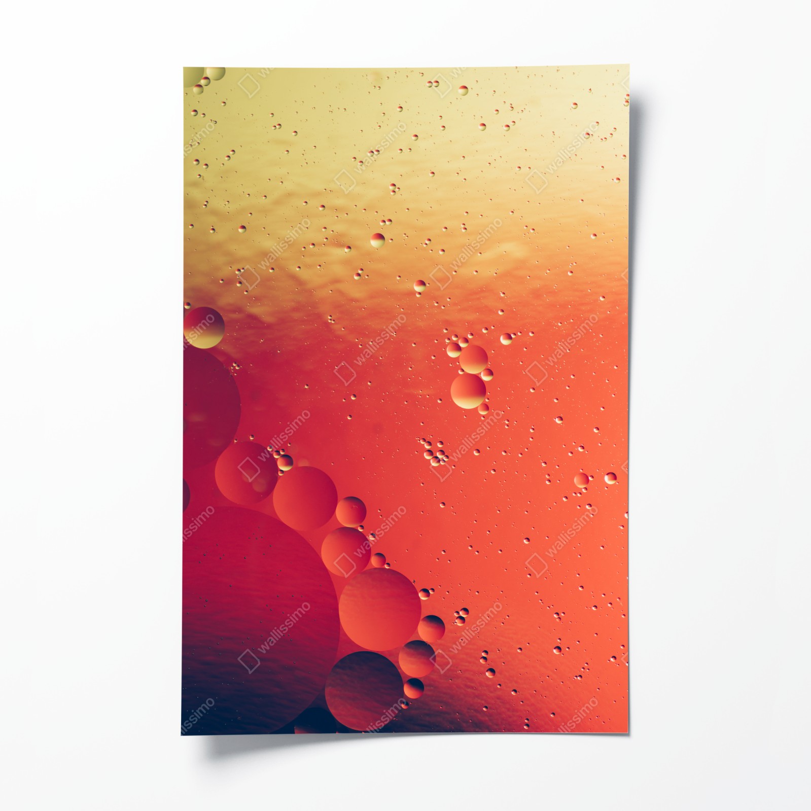 Dodaj ciepły, nowoczesny akcent do wnętrza dzięki tej abstrakcyjnej kompozycji unoszących się bąbelków i świetlistych pomarańczowych przejść.