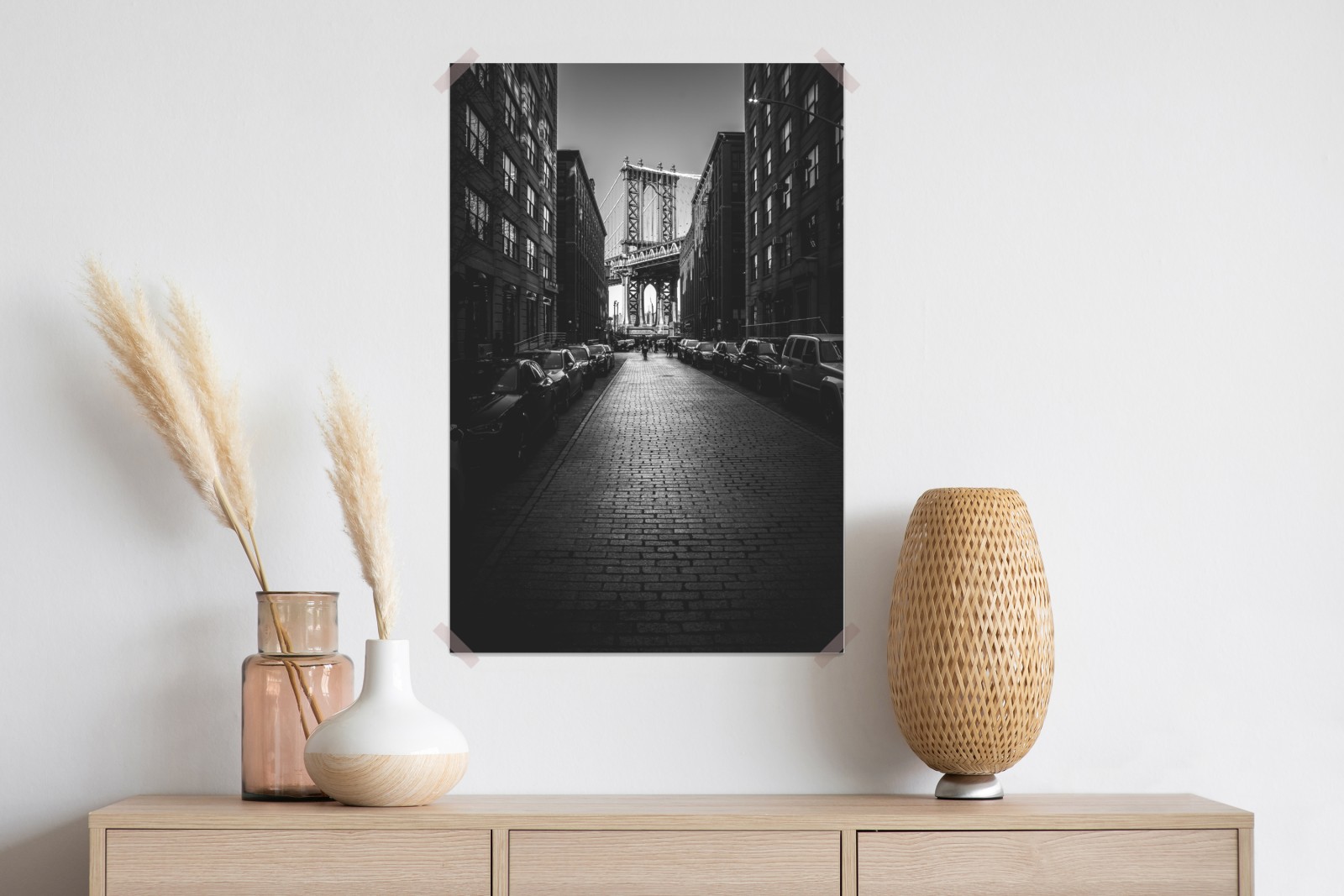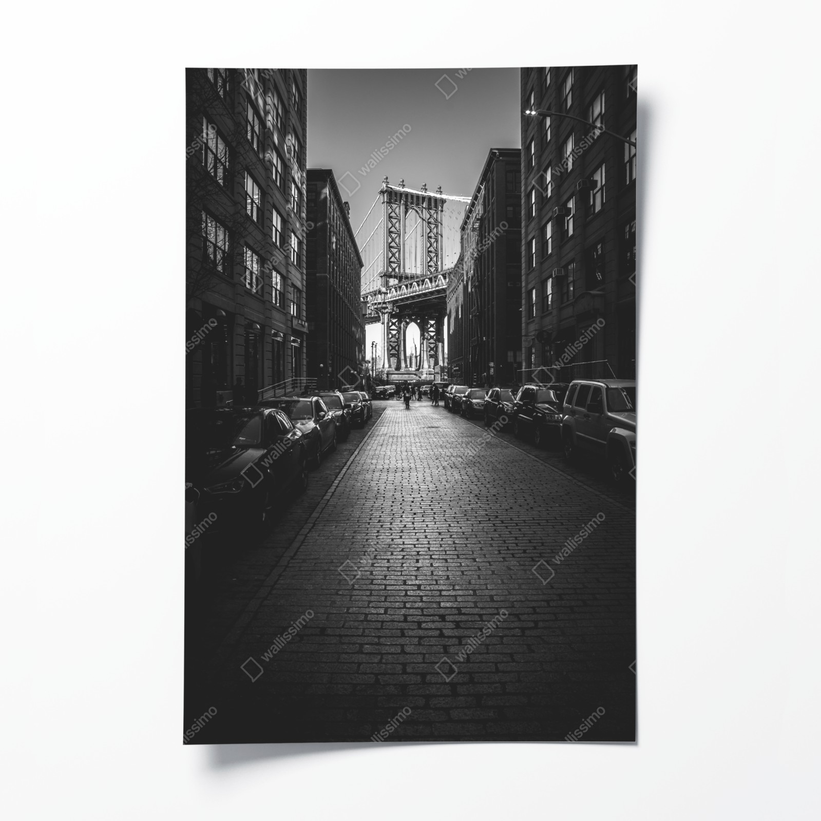 Plakat Most Manhattan w kadrze brukowanej ulicy