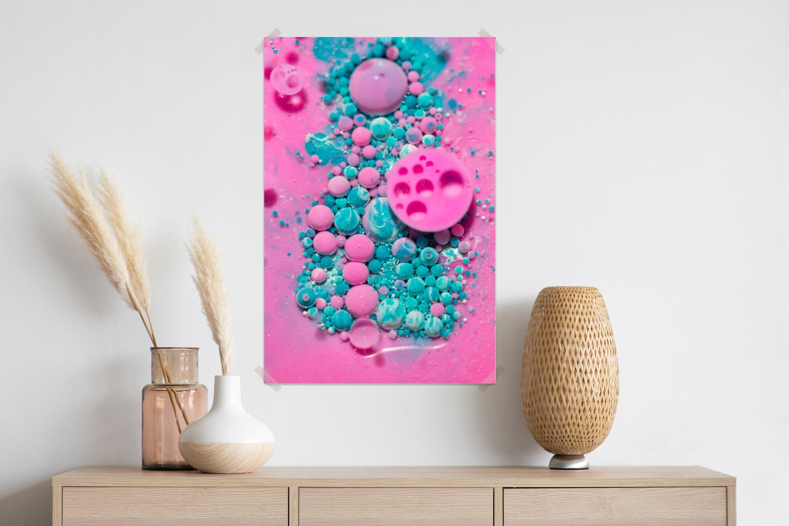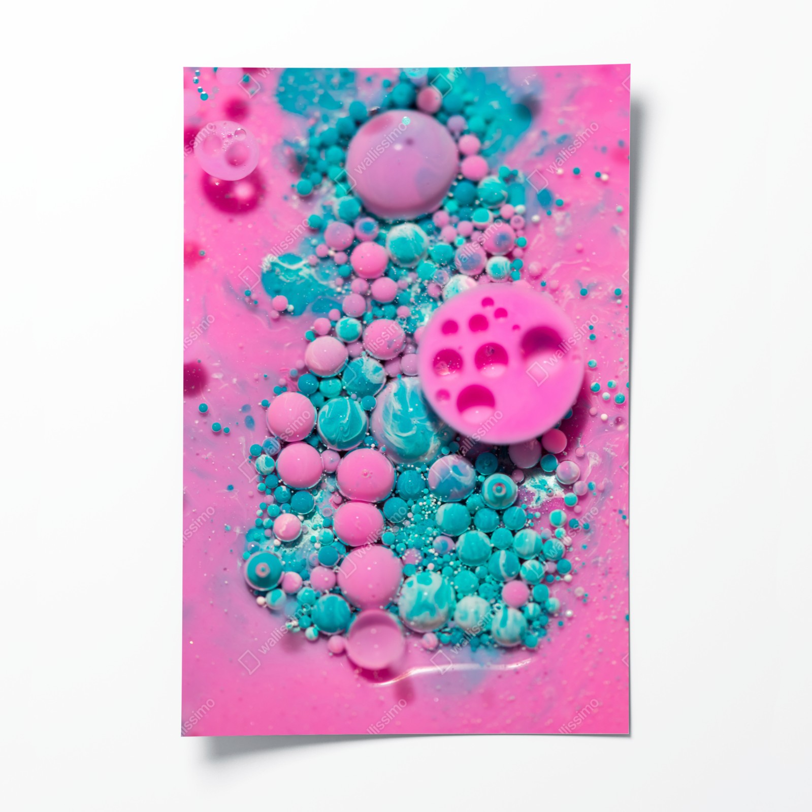 Ożyw swoją przestrzeń tym żywym różowo-turkusowym marmurowym obrazem o płynnych wzorach i zabawnych bąbelkach.
