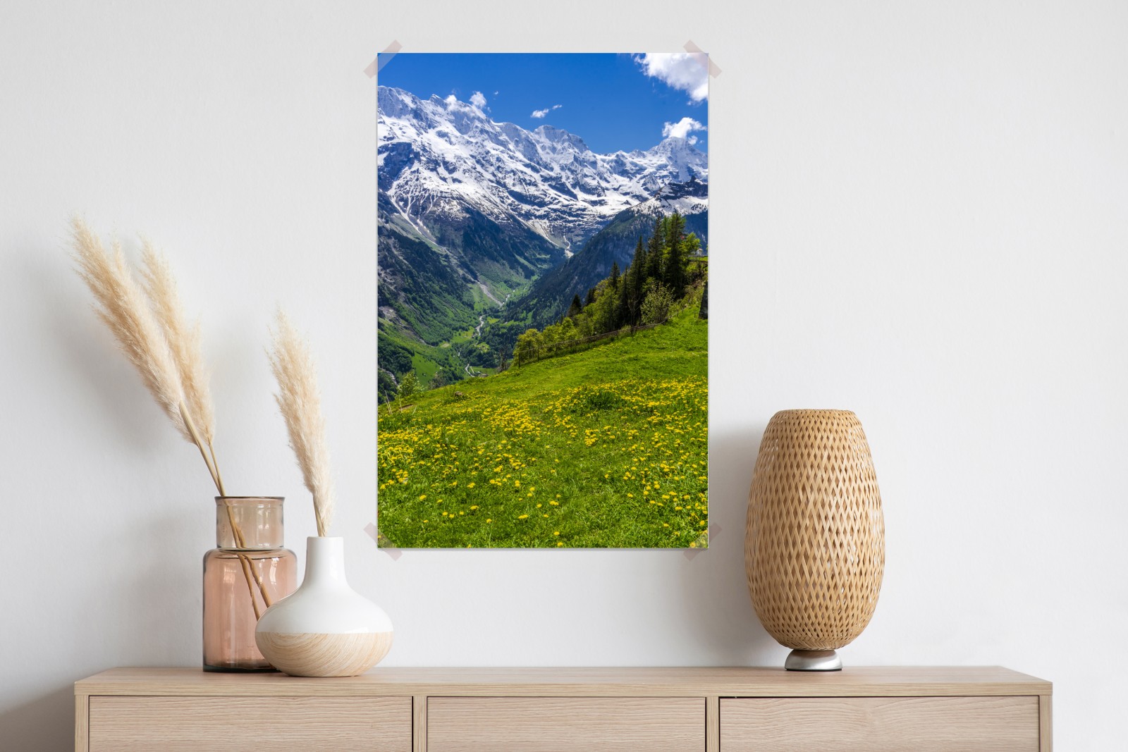 Plakat Alpejska łąka wiosną pod ośnieżonymi szczytami
