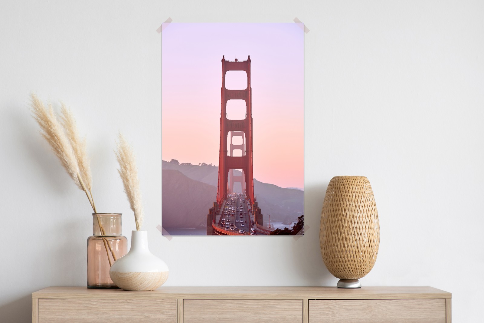 Plakat Golden Gate o pastelowym zachodzie słońca – Wallissimo®