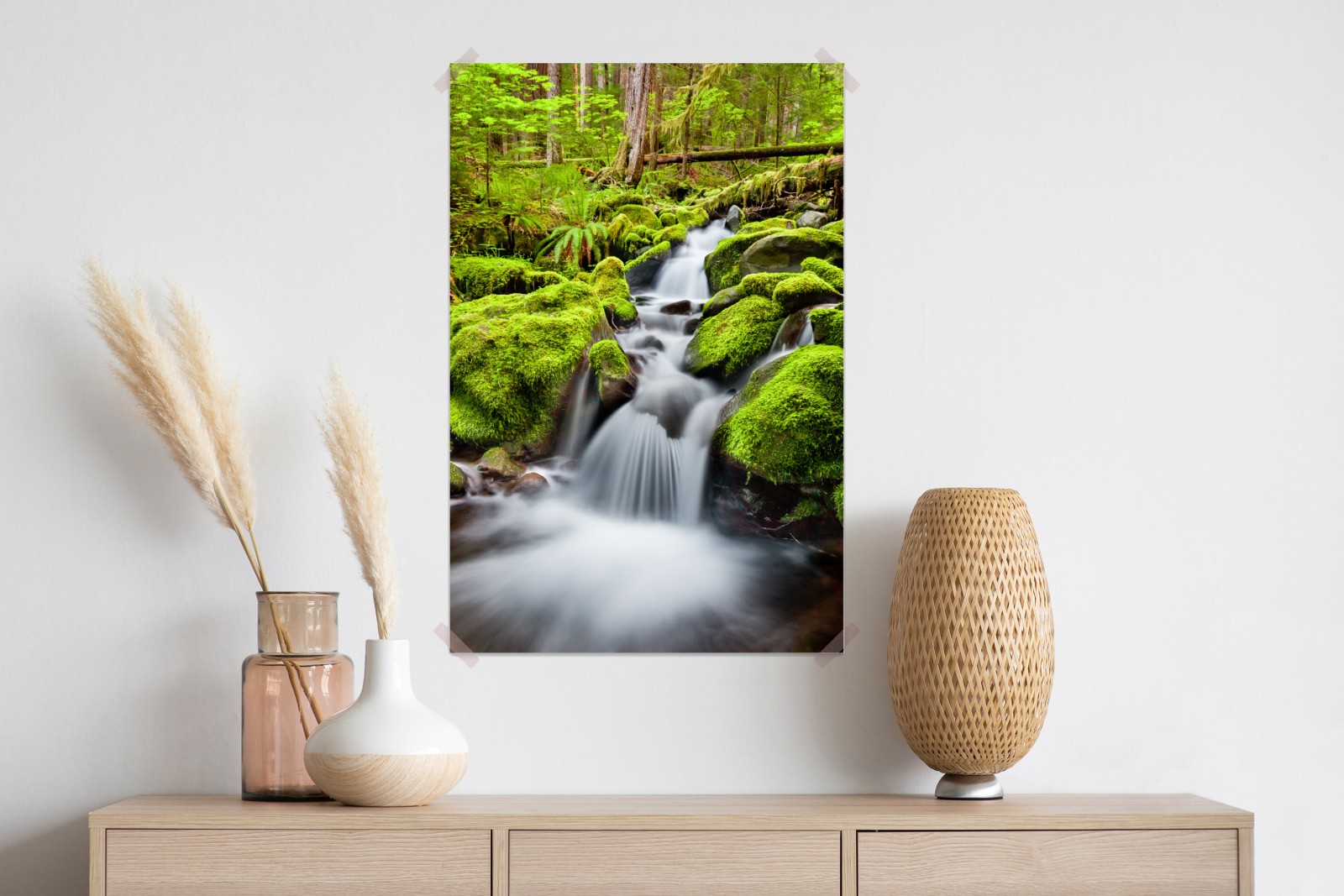 Wprowadź uspokajające piękno Sol Duc Falls do swojego wnętrza dzięki temu intensywnemu wydrukowi ukazującemu mechowy strumień i delikatne kaskady, idealny do nadania przestrzeni naturalnego spokoju.