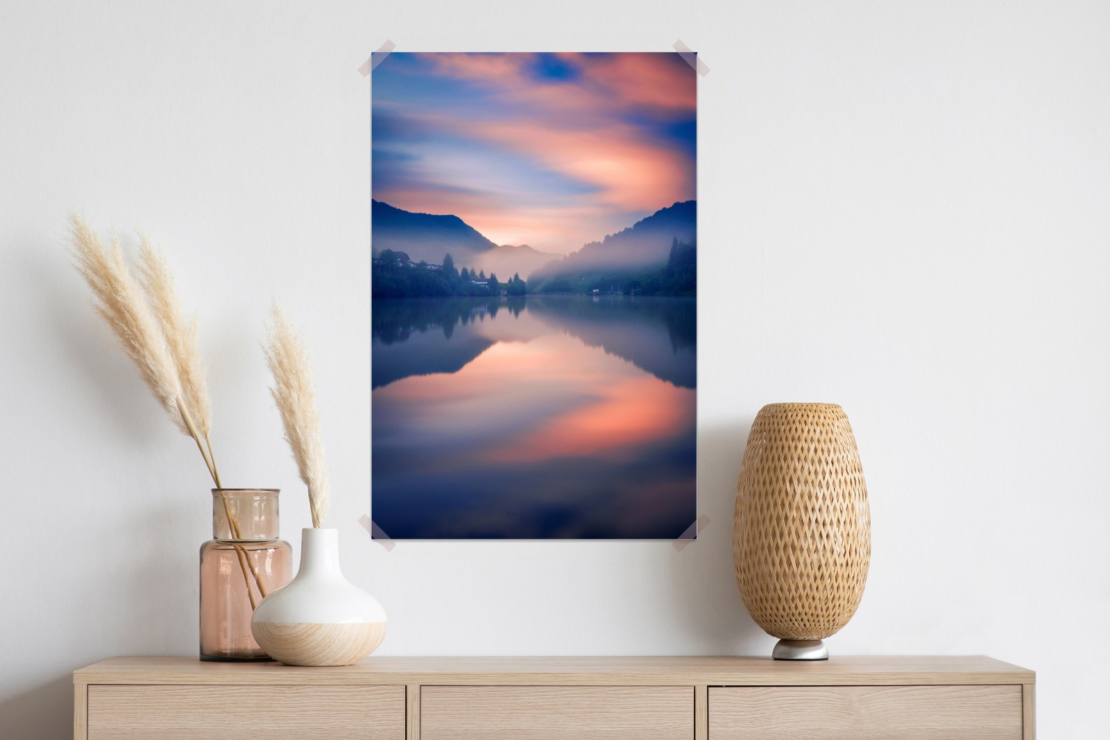 Plakat mglisty górski poranek nad jeziorem – Wallissimo®