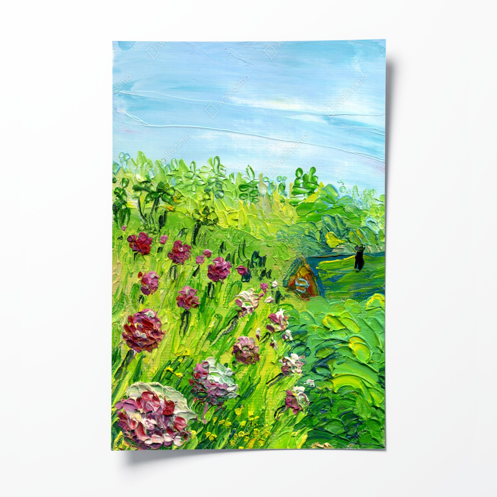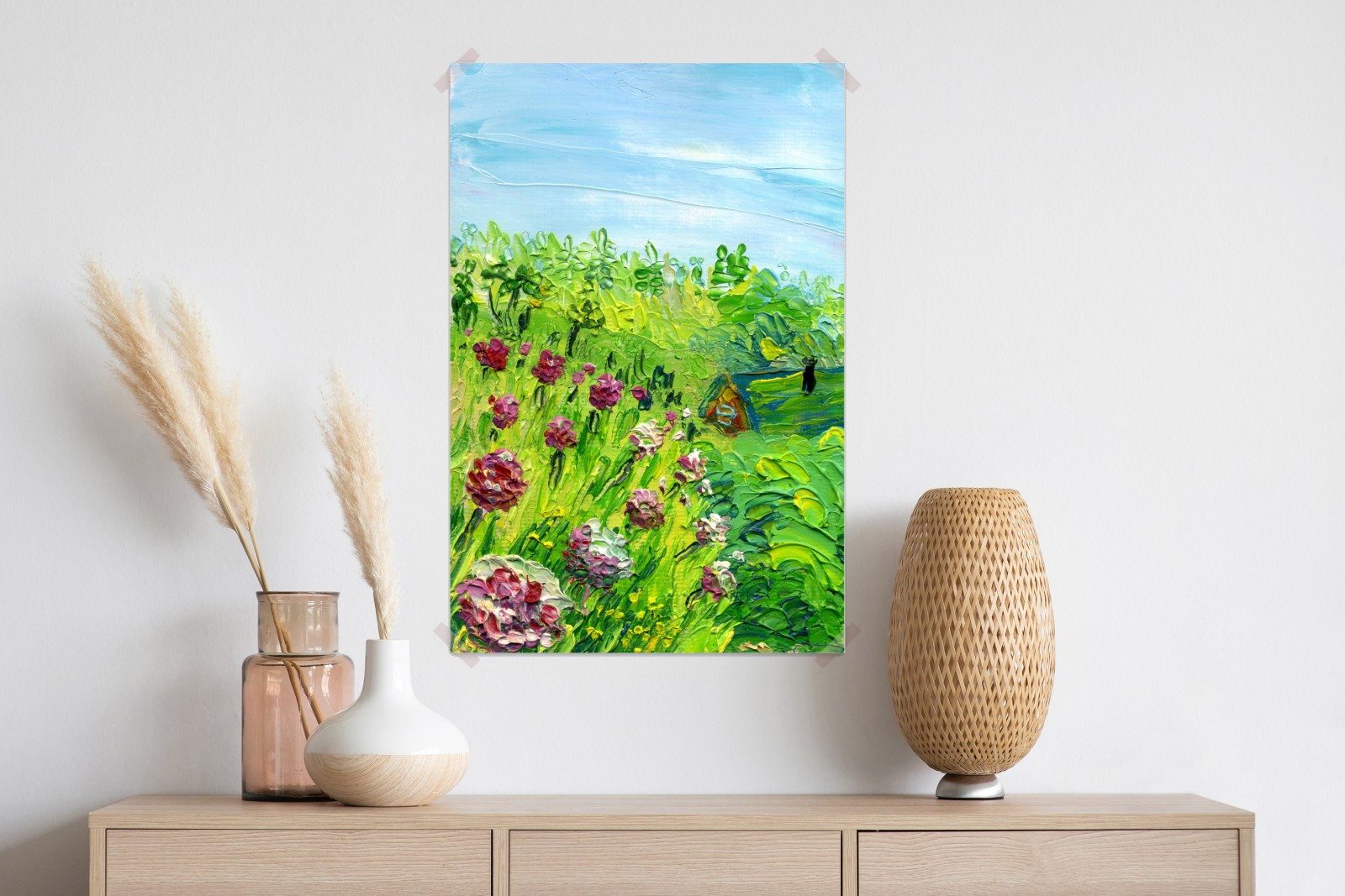 Plakat Łąka piwonii wiosenna — impasto kwiatowy obraz