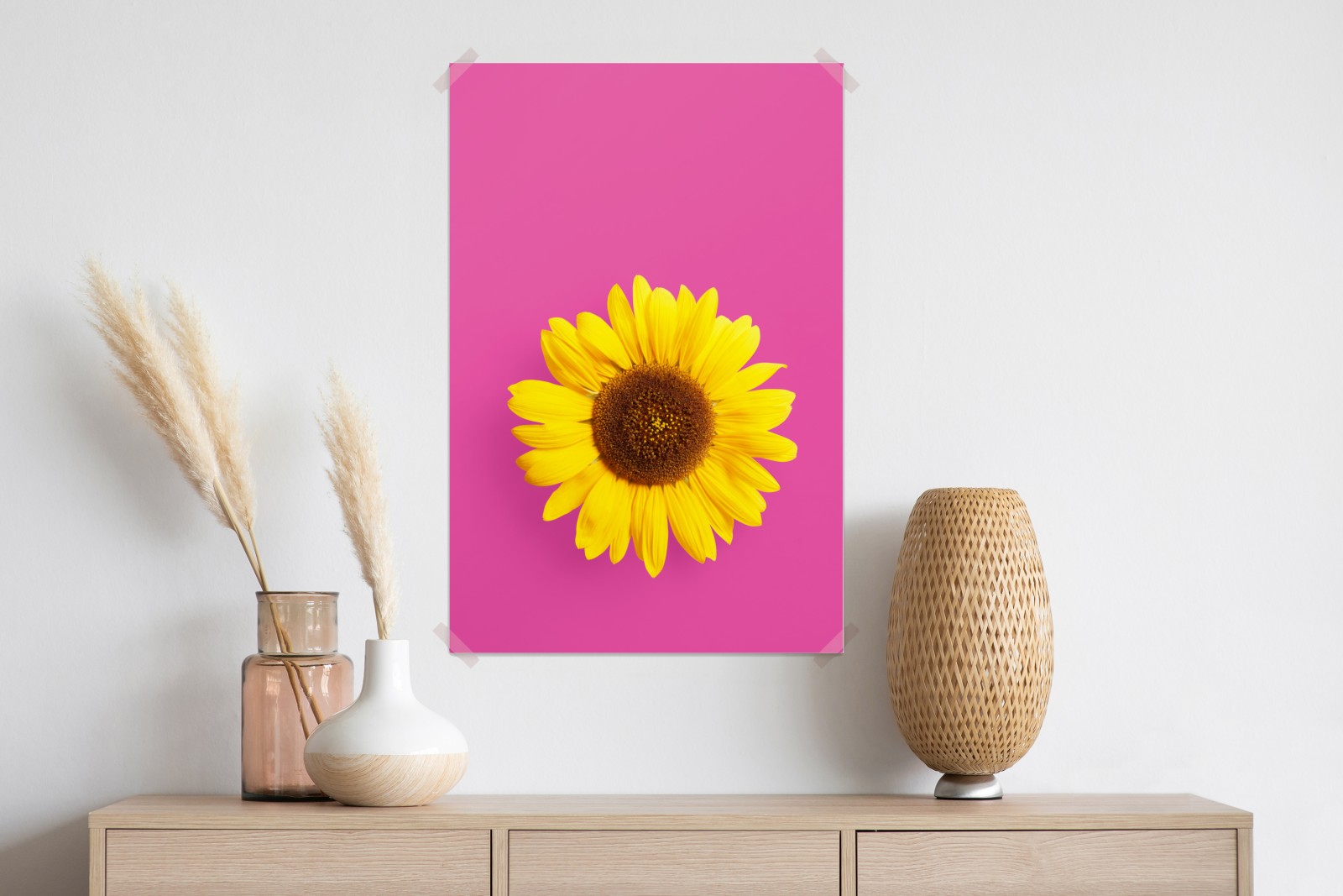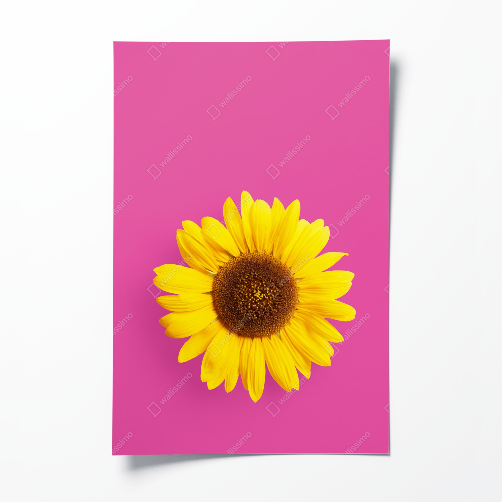 Jasny słonecznik na żywym różowym tle wnosi ciepło i radość do wnętrza.