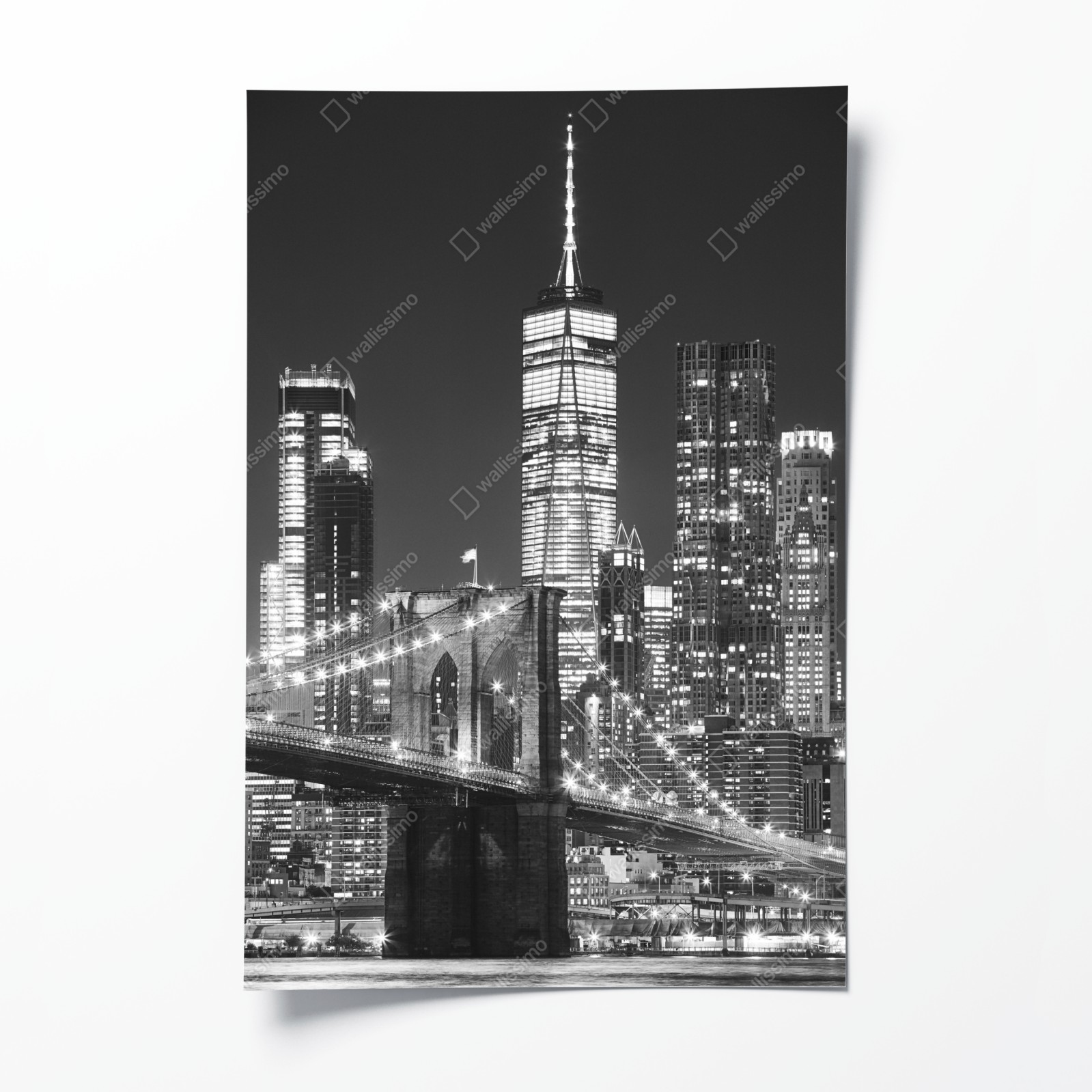 Plakat Most Brooklyński i panorama Manhattanu nocą