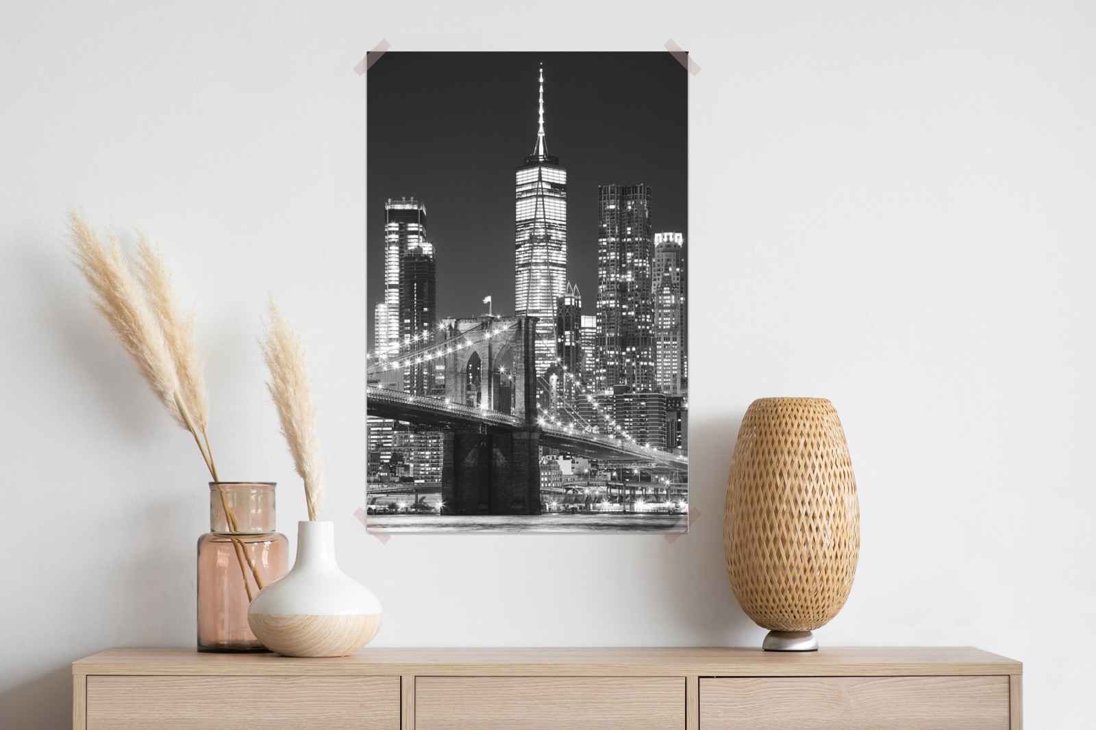 Nadaj wnętrzu dramatyczny miejski charakter dzięki czarno-białemu nocnemu widokowi na Most Brooklyński i Manhattan.