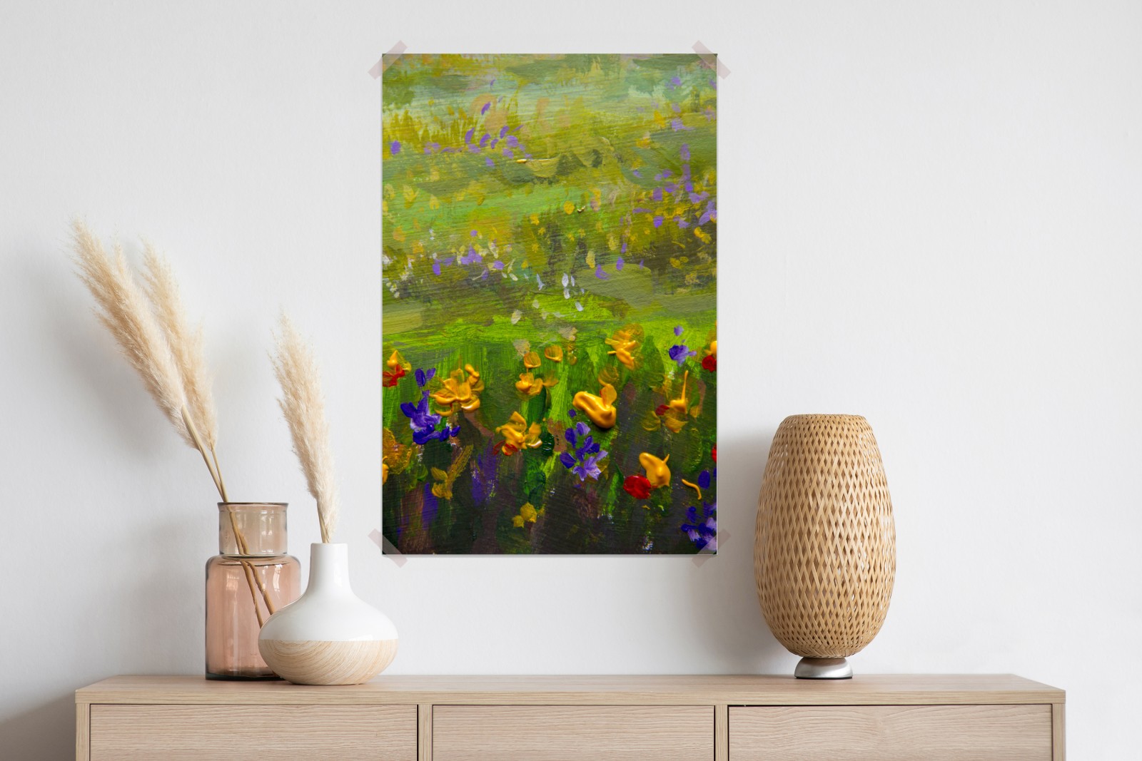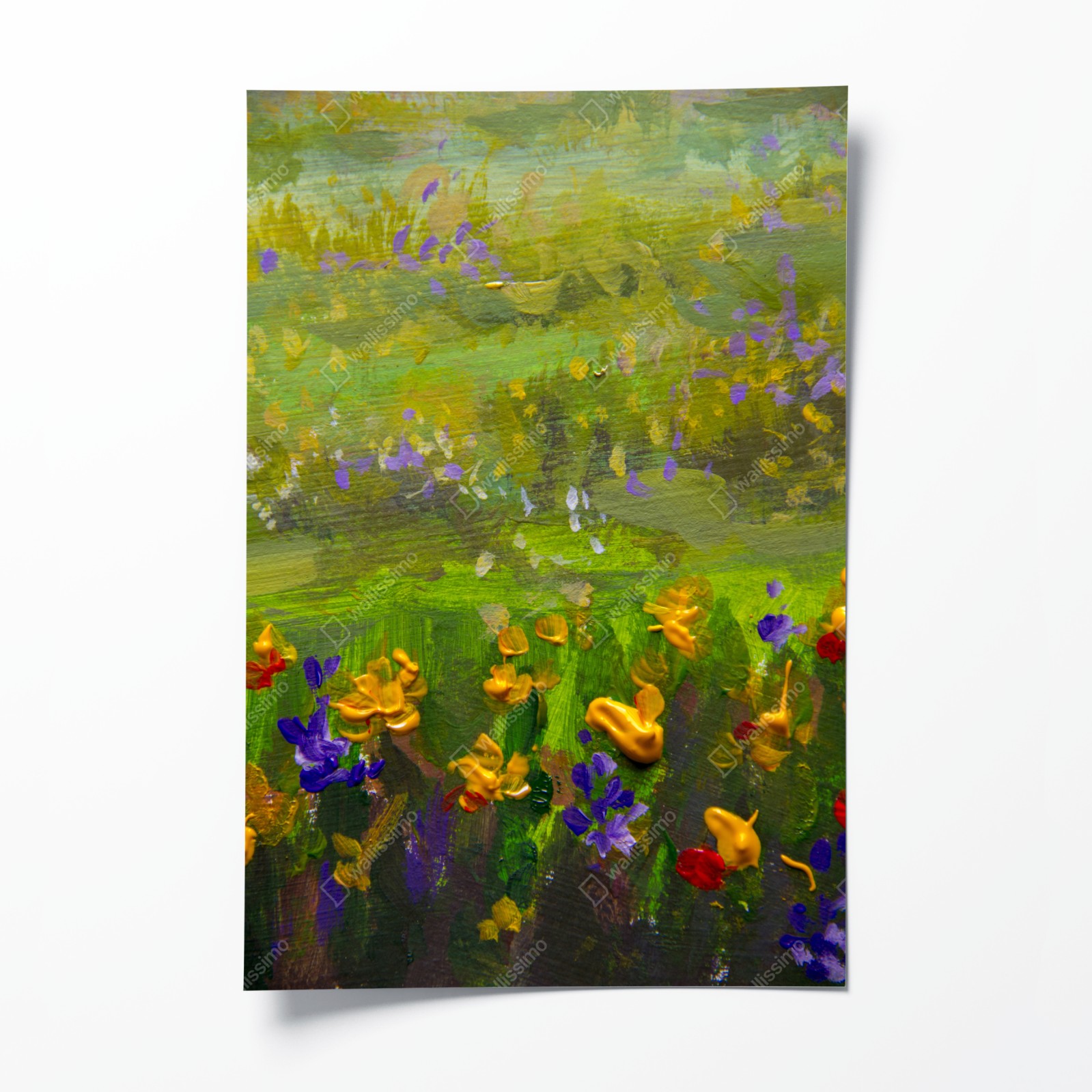 Dodaj do wnętrza energię kwiatów dzięki temu olejnemu malarstwu przedstawiającemu łąkę w fioletowych i żółtych tonacjach.