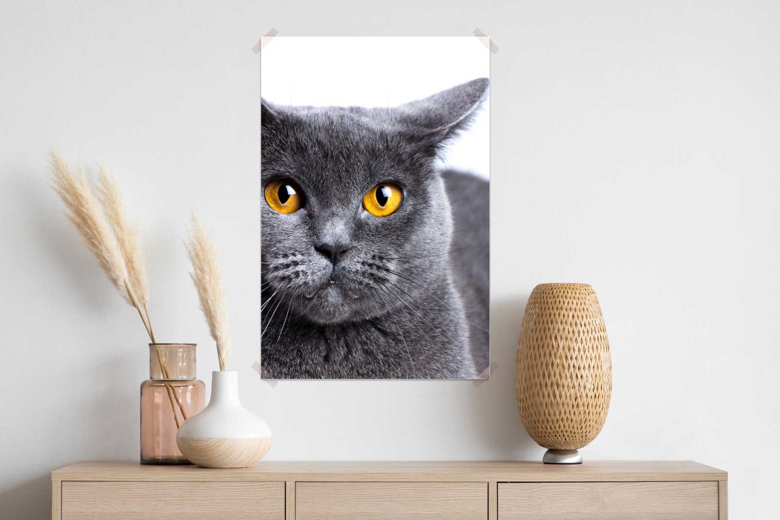 Plakat Zachwycający portret szarego kota z złotymi oczami