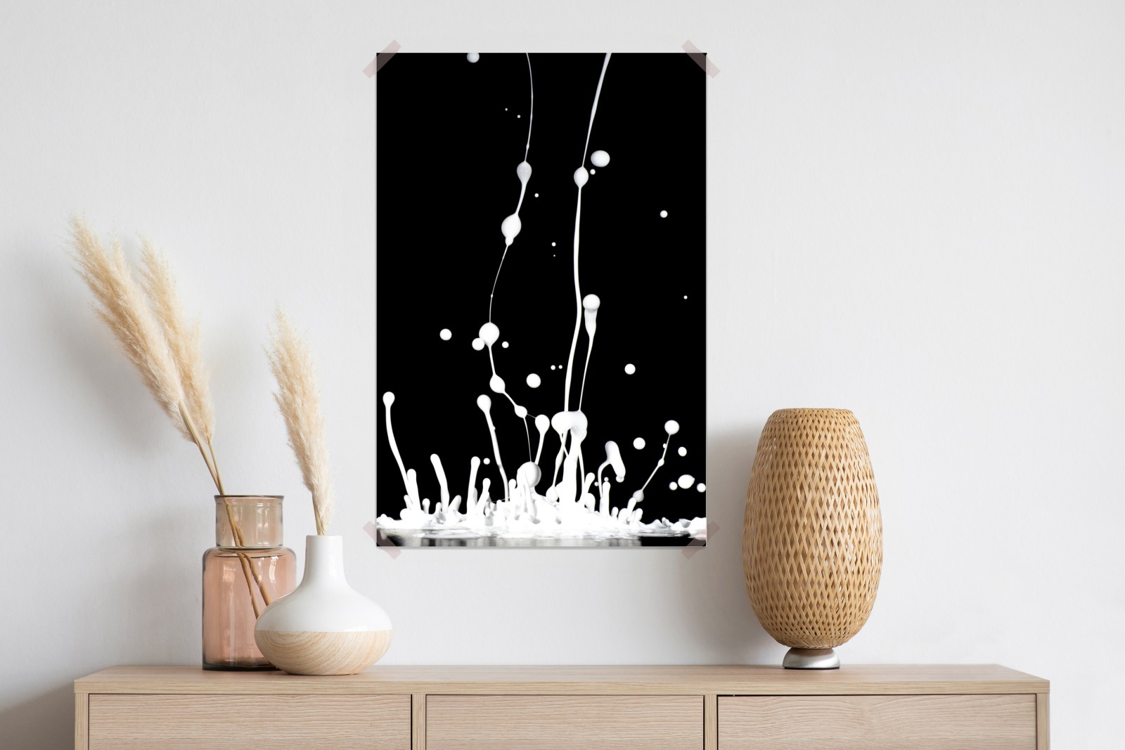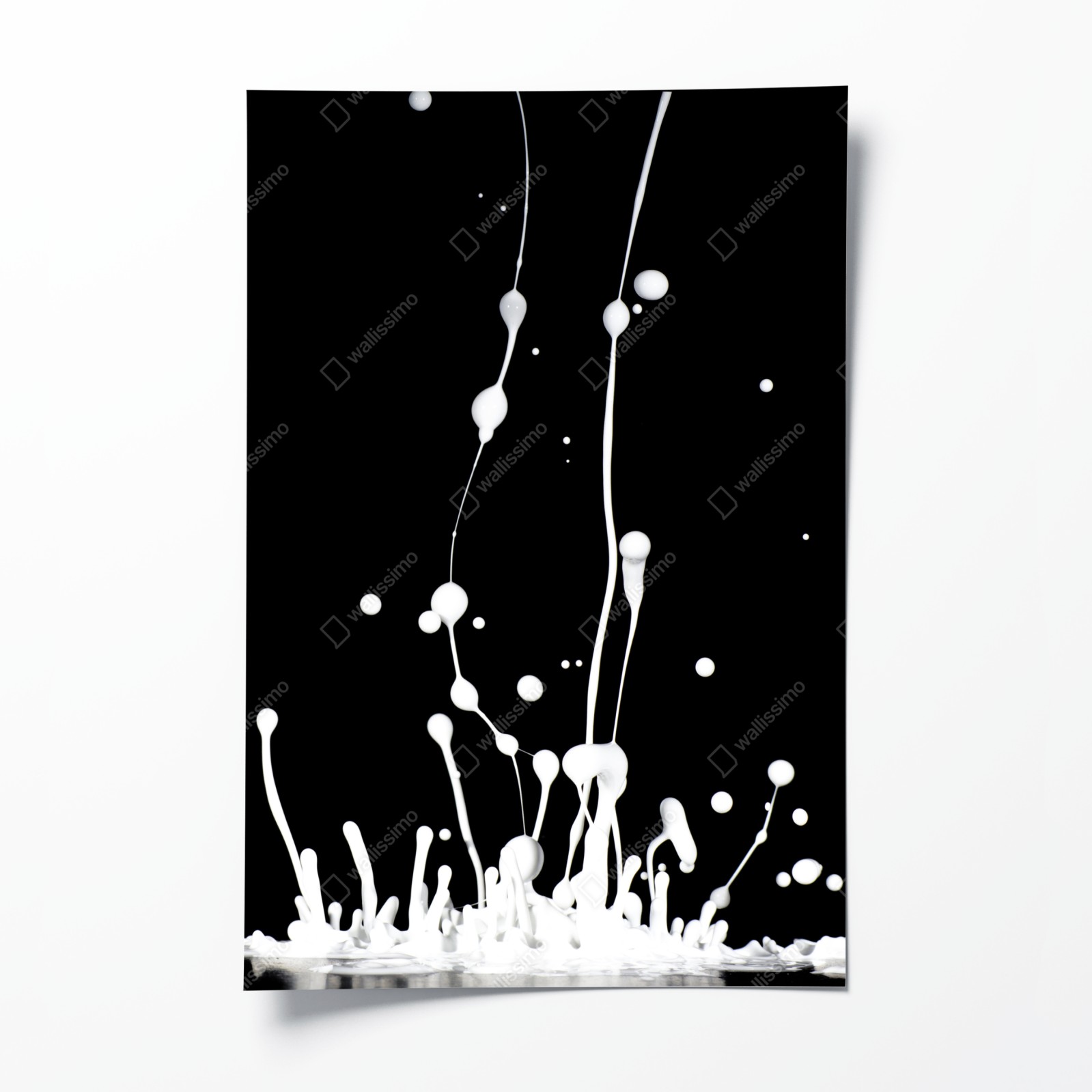 Dynamiczny biały rozprysk na czarnym tle tworzy odważne, minimalistyczne wrażenie w nowoczesnych wnętrzach.