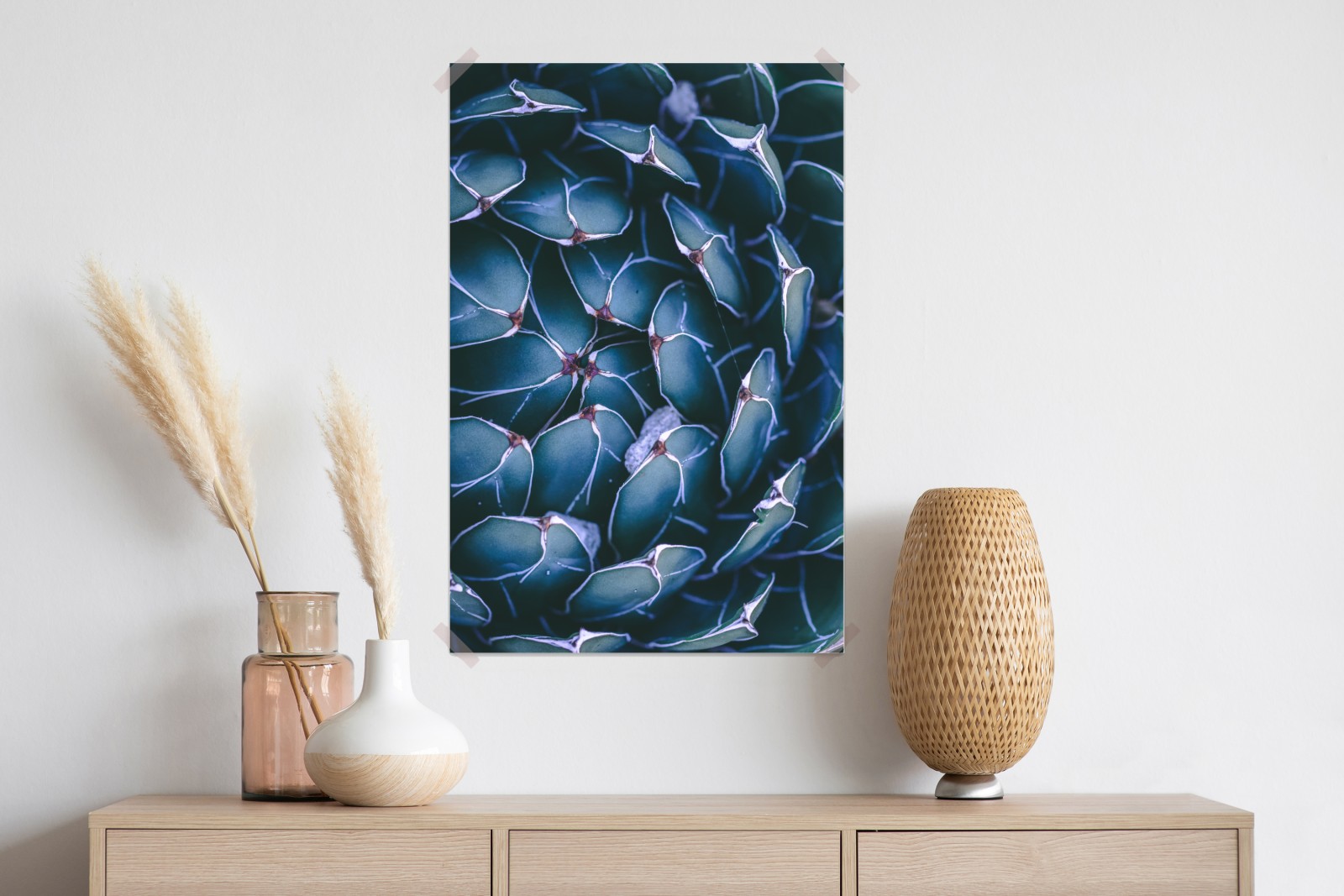 Plakat geometryczne zbliżenie sukulenta w turkusie – Wallissimo®