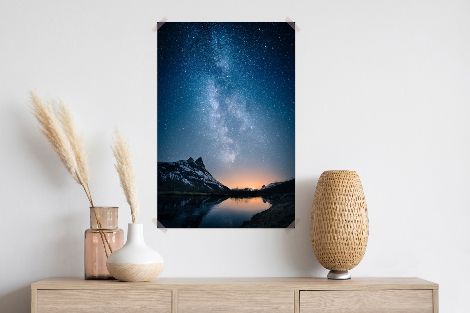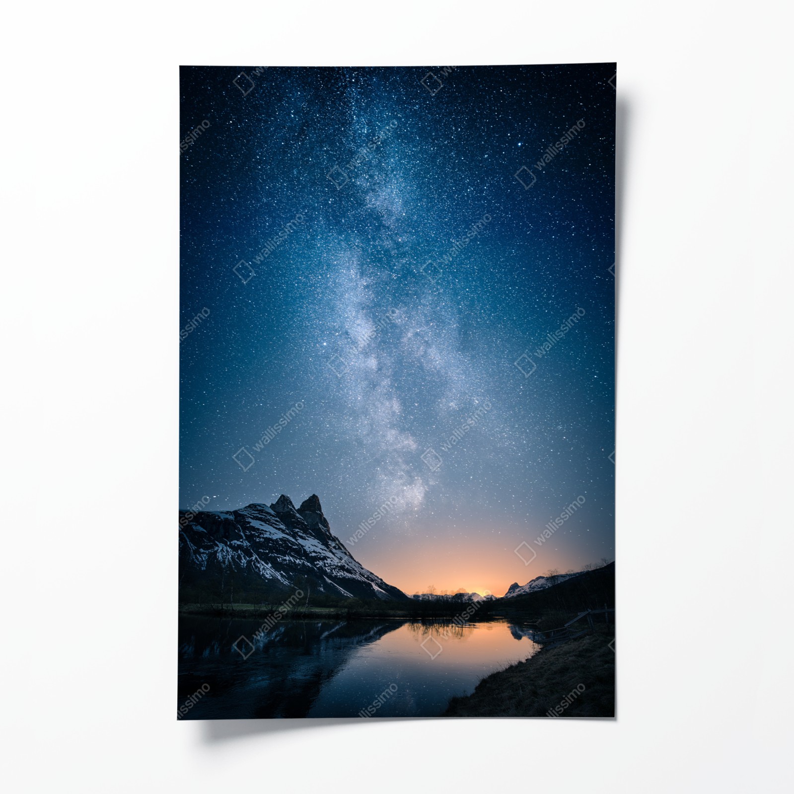 Poczuj magię gwiazd rozświetlających nocę nad spokojnymi górami i ich odbiciem w wodzie.