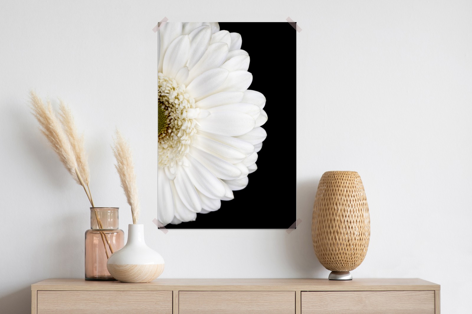 Plakat Biała gerbera na czarnym tle minimalistyczne zbliżenie