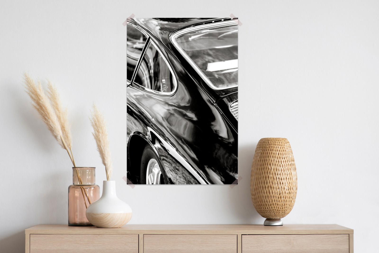 Plakat Zabytkowy tył samochodu w czerni i bieli