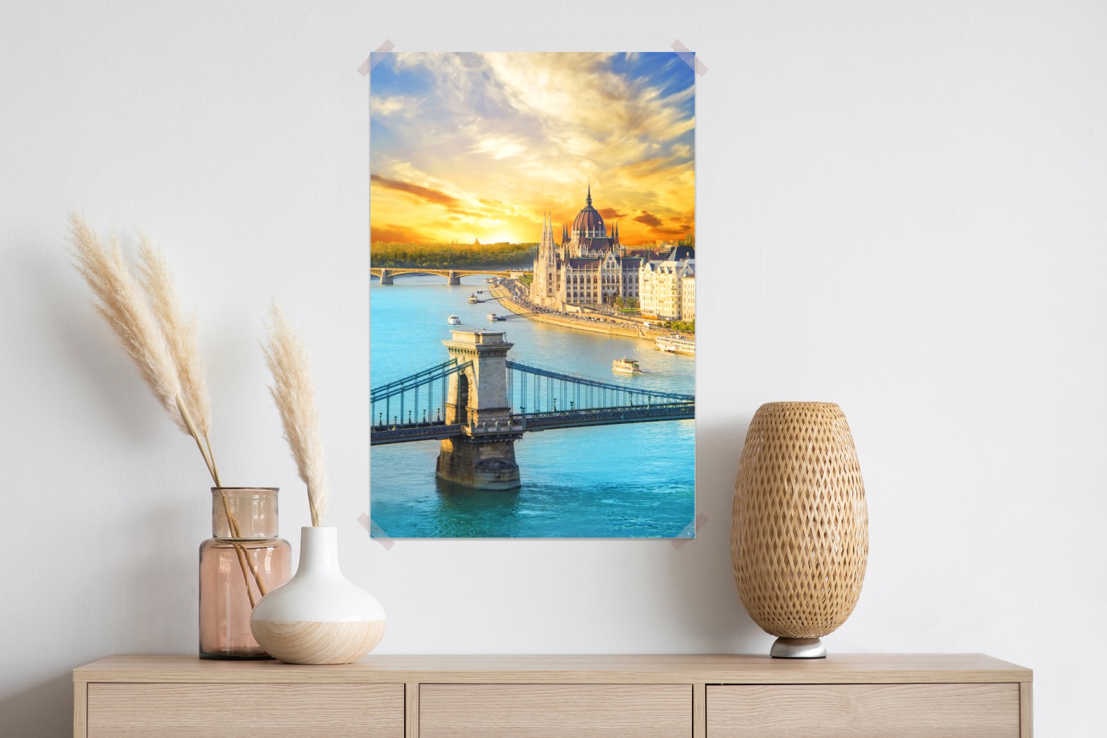 Plakat Zachód słońca nad Budapesztem i mostem łańcuchowym