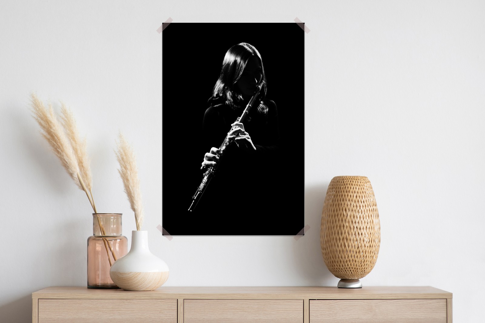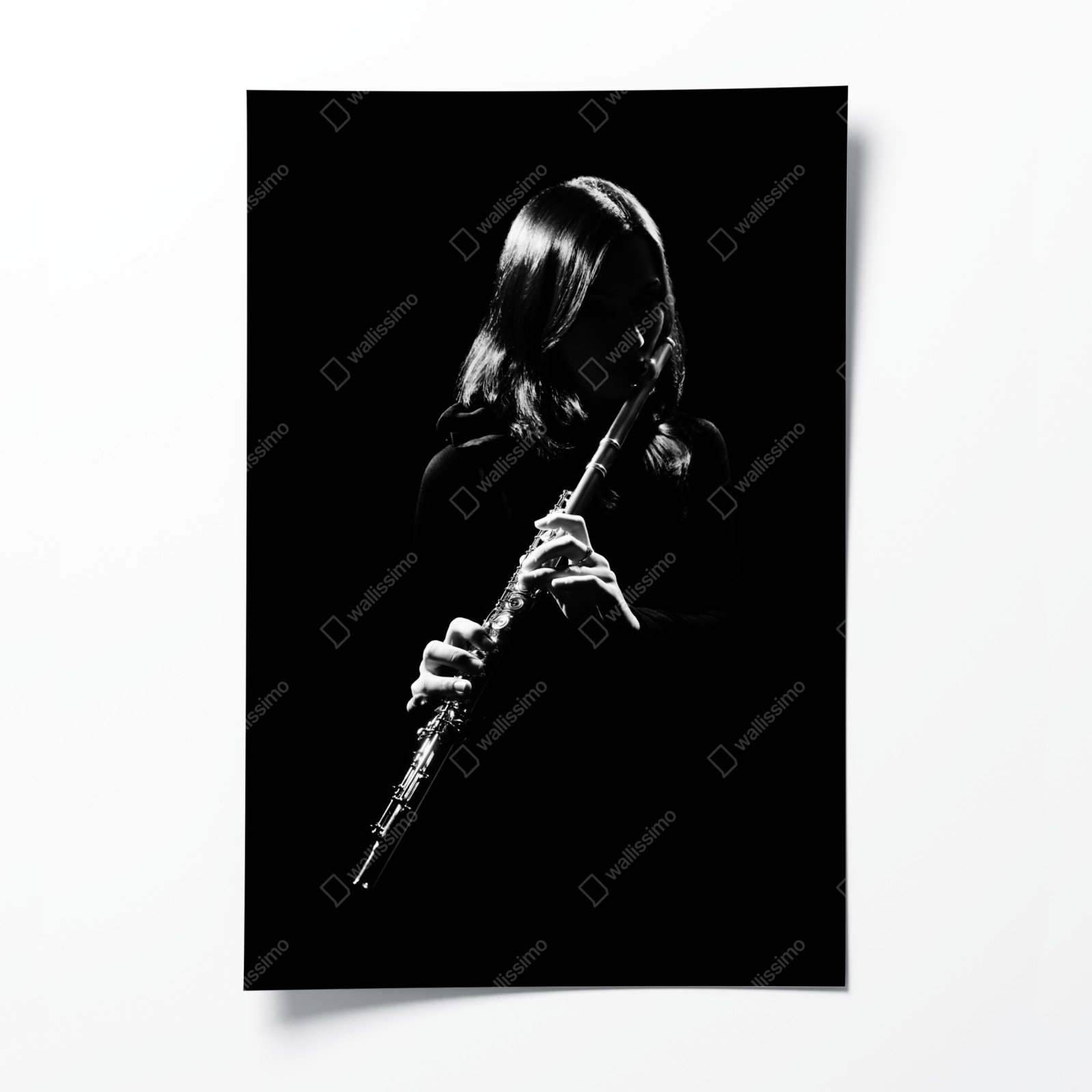 Dodaj klasycznej elegancji do wnętrza dzięki tej efektownej czarno-białej sylwetce flecistki, idealnej do nowoczesnych i minimalistycznych przestrzeni.