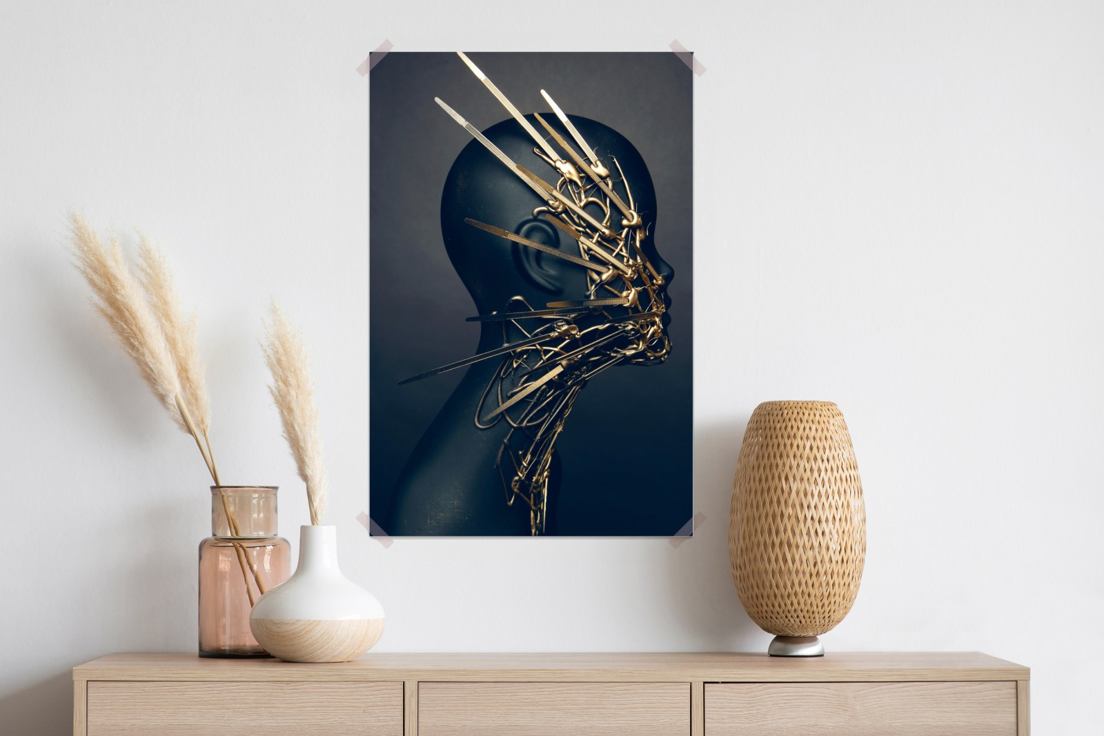 Plakat Złota rzeźba portretowa na czarnym manekinie