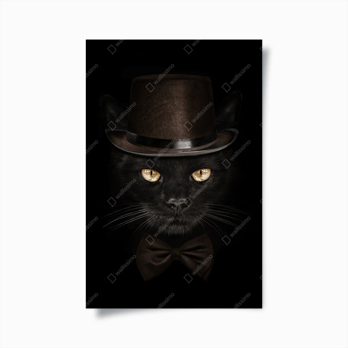 Plakat Elegancki czarny kot w cylindrze i muszce