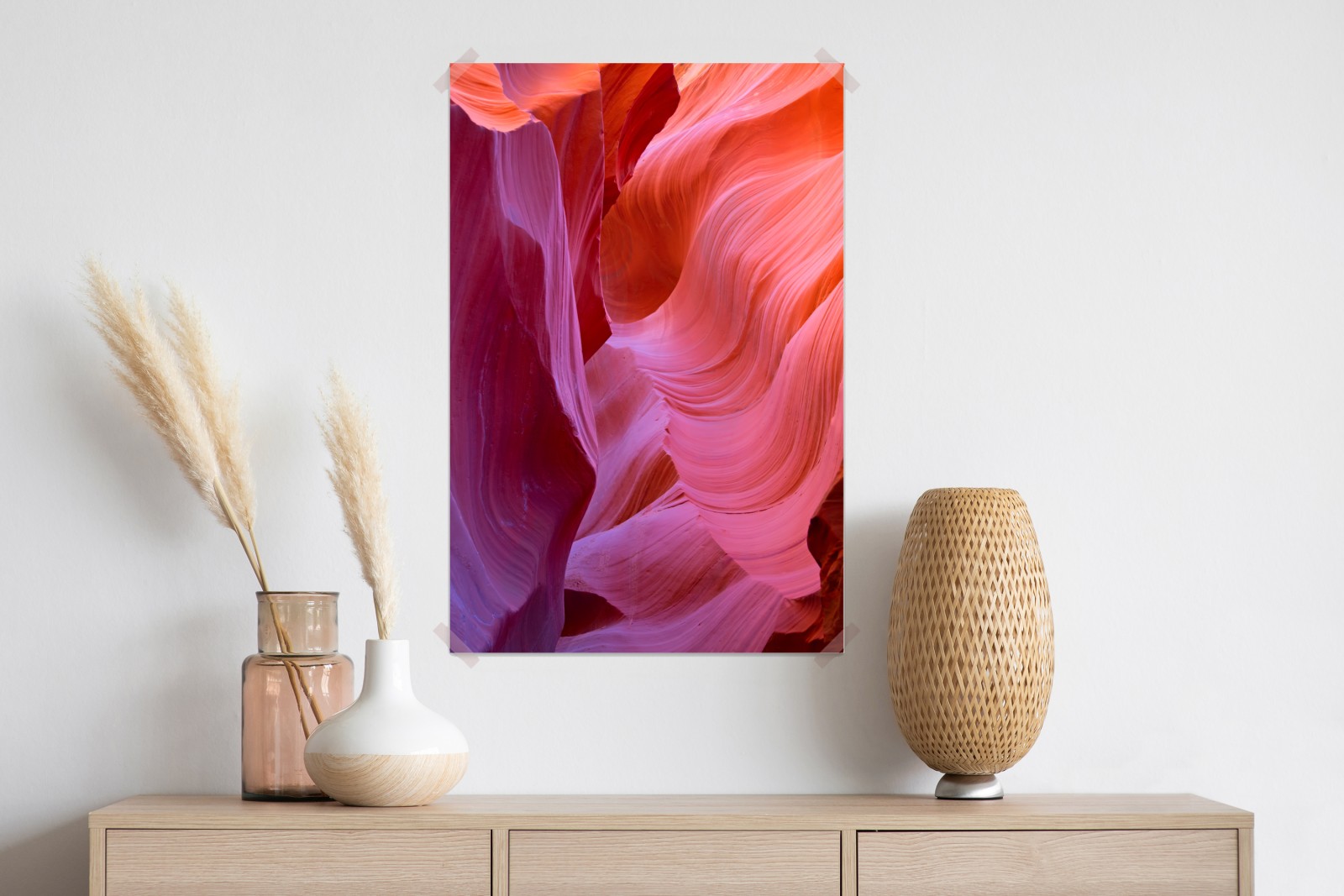 Przenieś płynne piękno Antelope Canyon do swojego wnętrza dzięki temu żywemu, piaskowcowemu abstrakcyjnemu wydrukowi, idealnemu do dodania ciepła i tekstury każdemu pomieszczeniu.