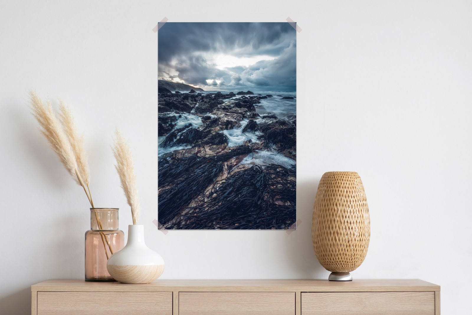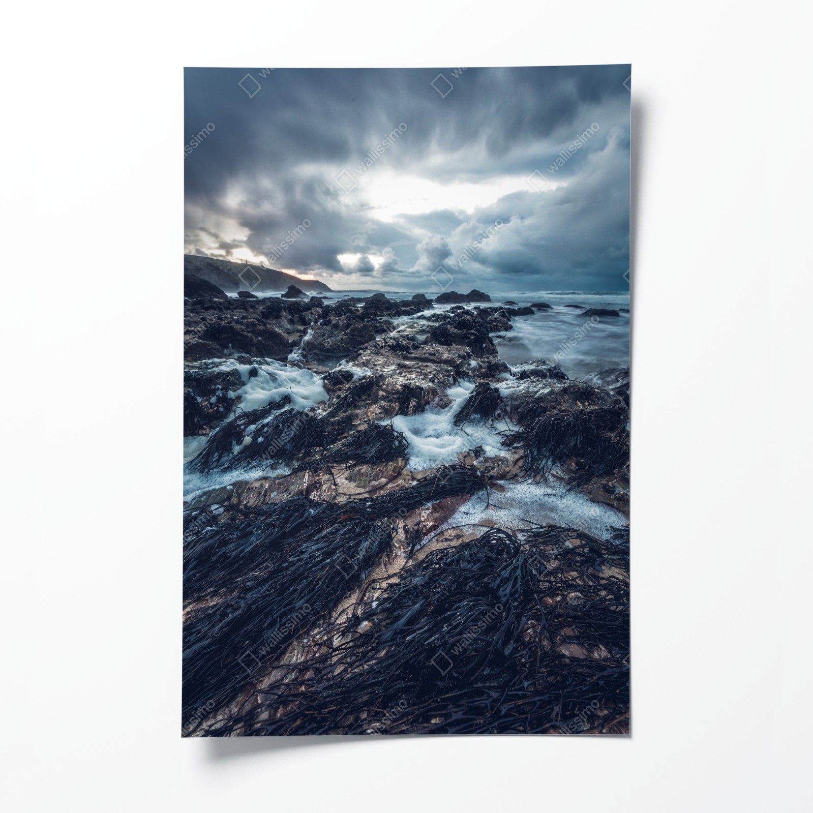 Plakat Nastrojowe skaliste wybrzeże o zmierzchu