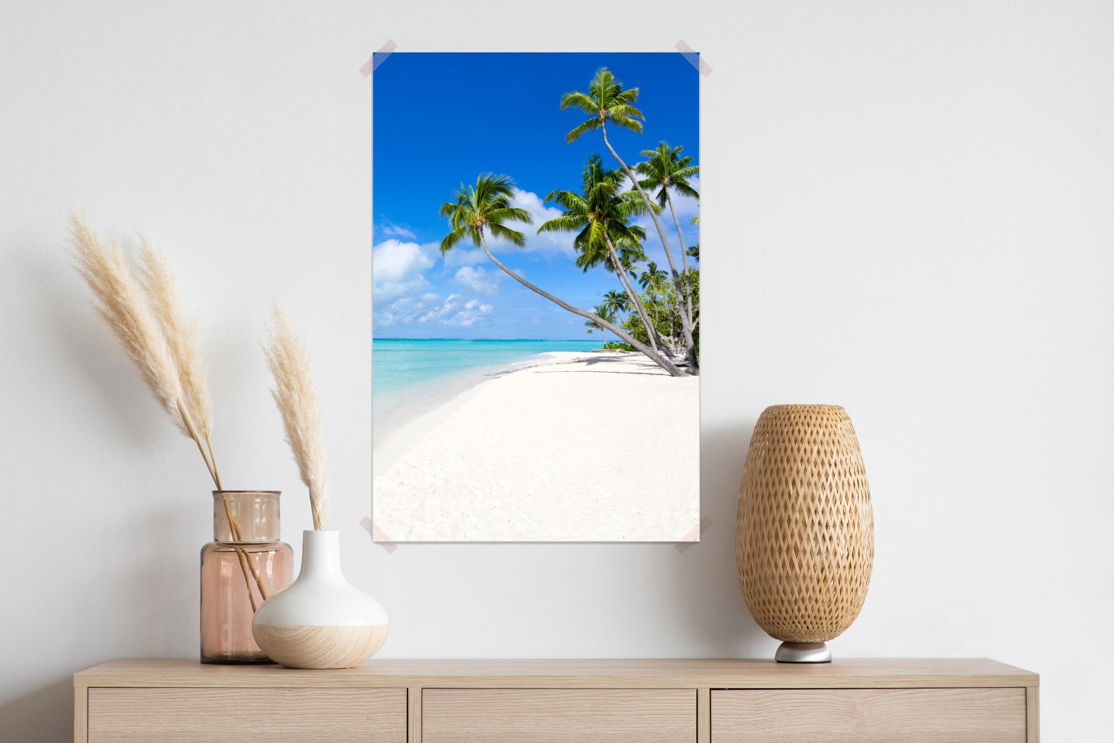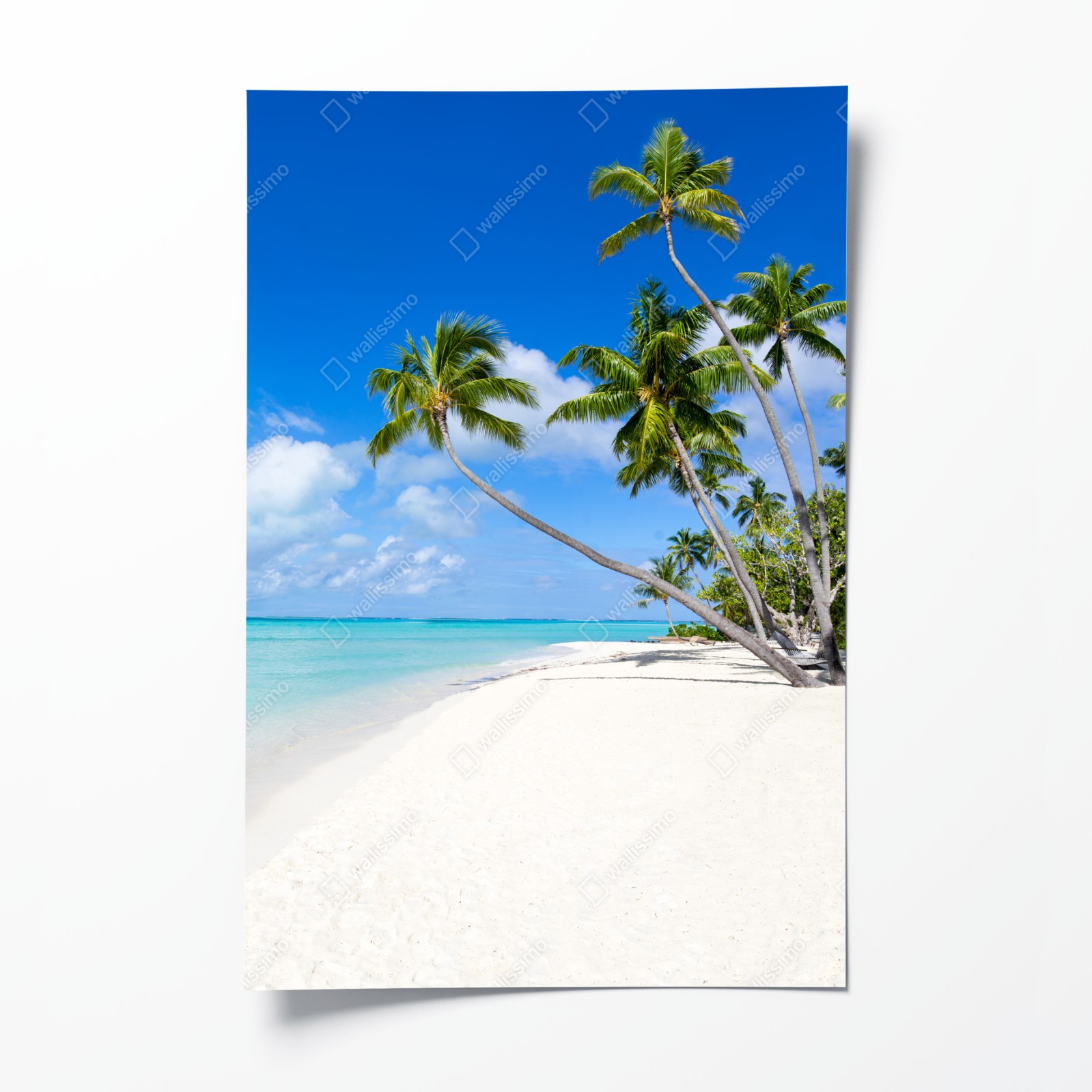 Wprowadź atmosferę wyspy do wnętrza dzięki tej żywej scenerii tropikalnej plaży z kołyszącymi się palmami, turkusową wodą i nieskazitelnym białym piaskiem.