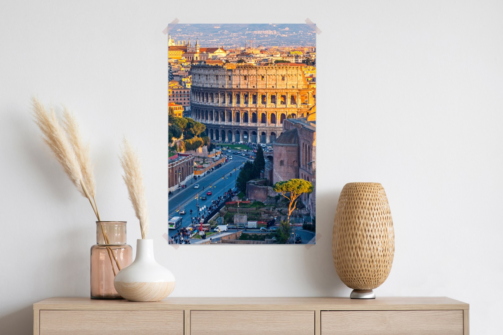 Plakat Złote koloseum o zachodzie słońca, Rzym