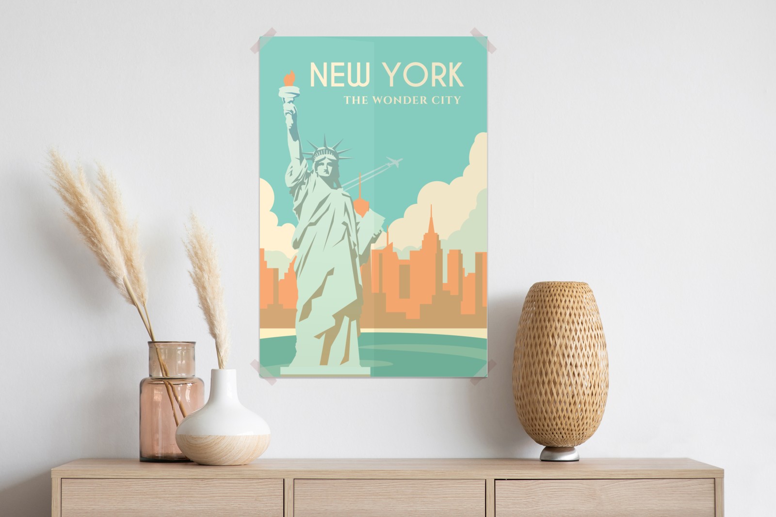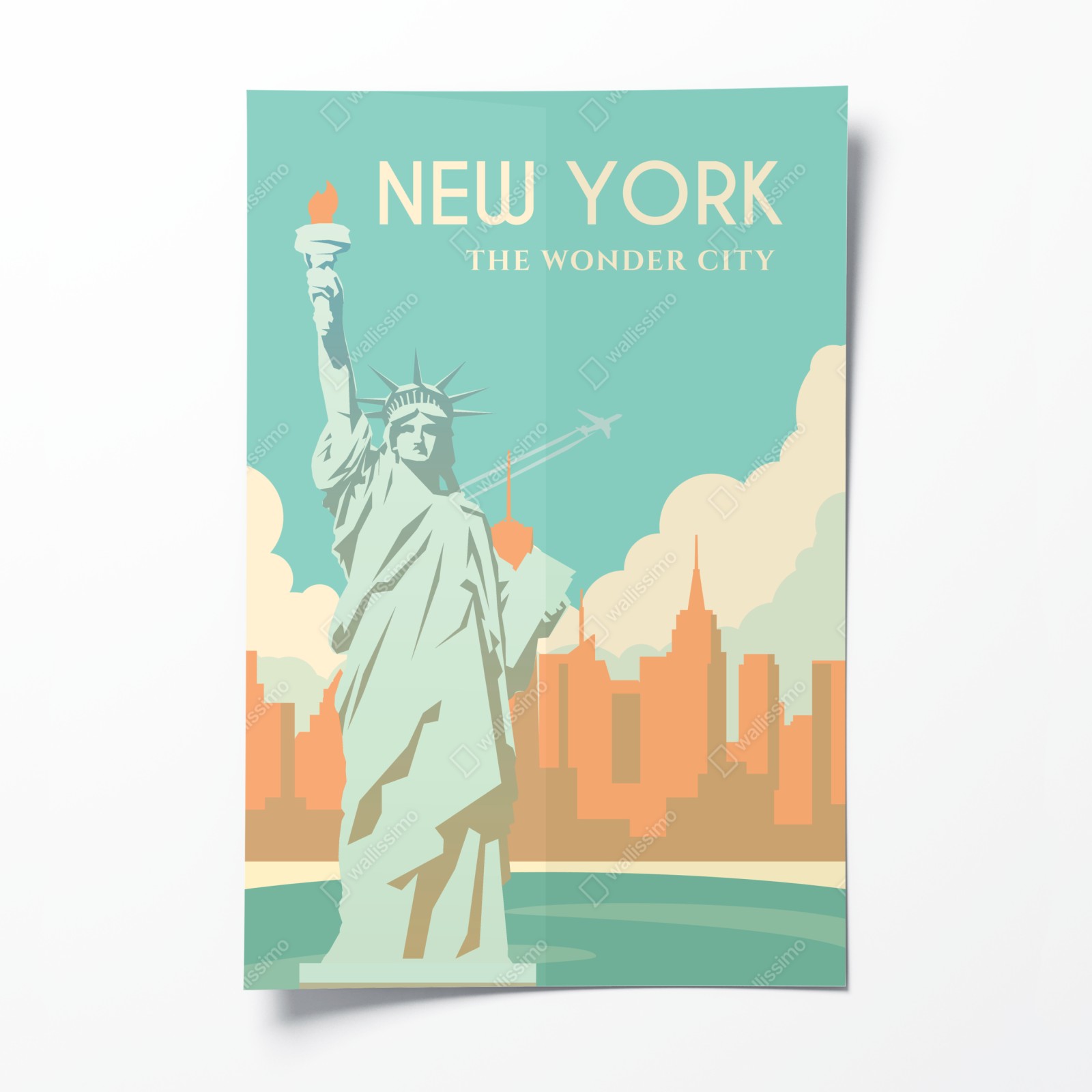 Dodaj retro urok i ikonę Statuy Wolności do wnętrza dzięki tej stylizowanej grafice.