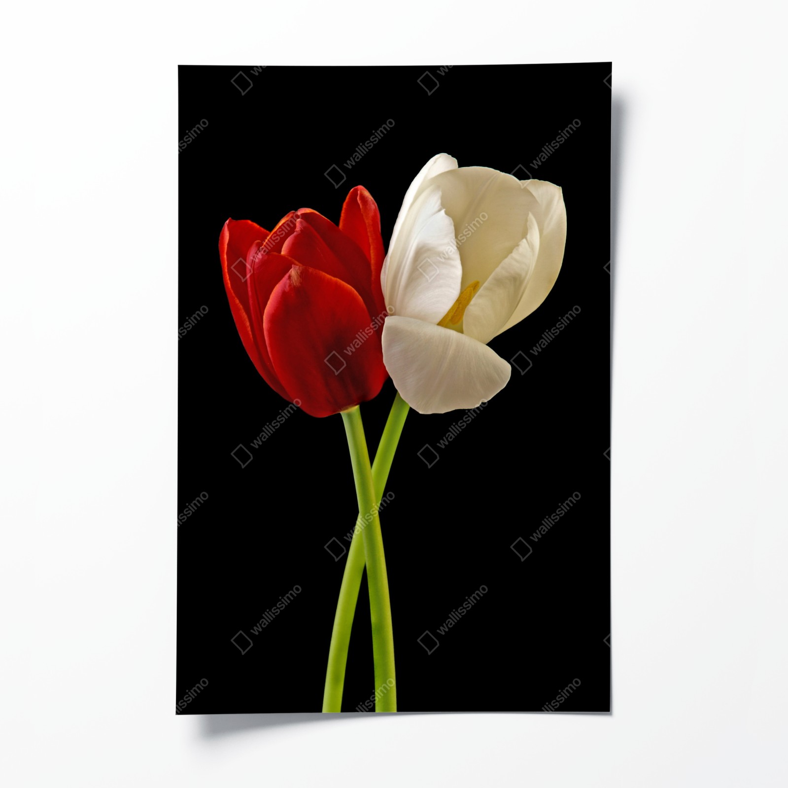 Plakat Czerwono-białe tulipany na czarnym tle
