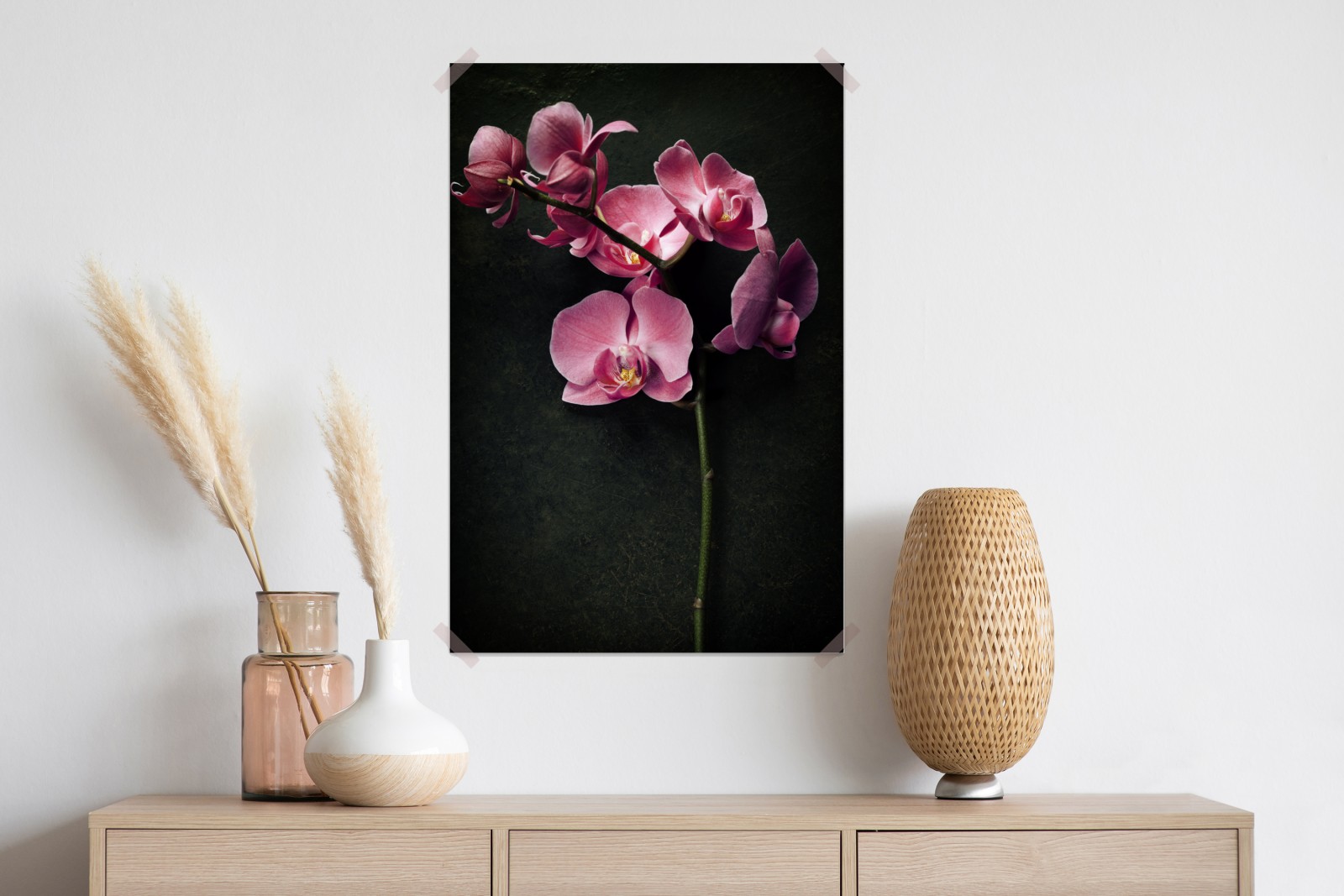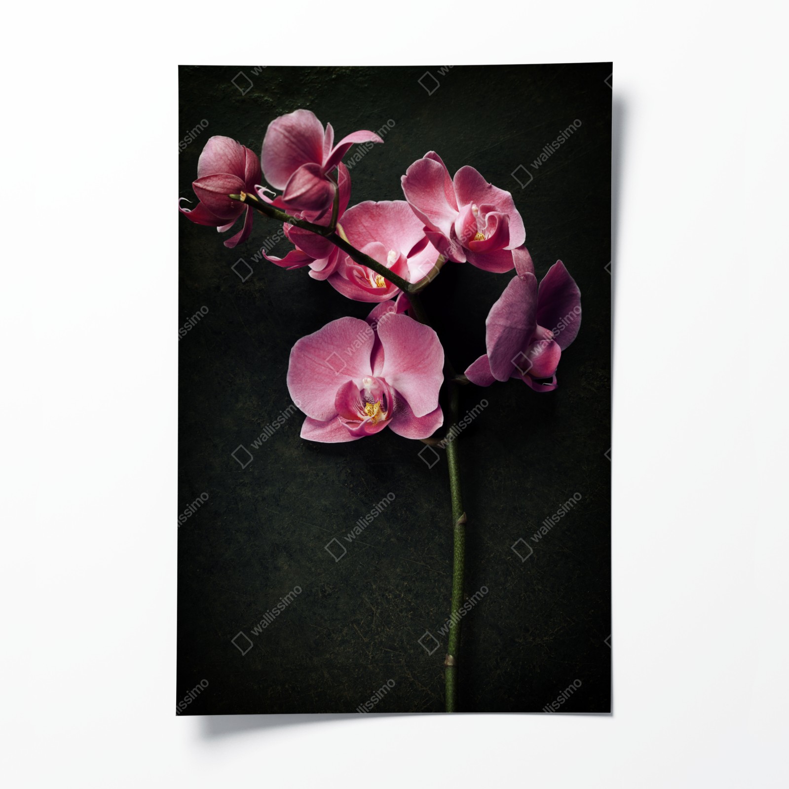 Wprowadź elegancję do wnętrza dzięki różowemu storczykowi na nastrojowym, ciemnym tle, idealnym do sypialni lub salonu.