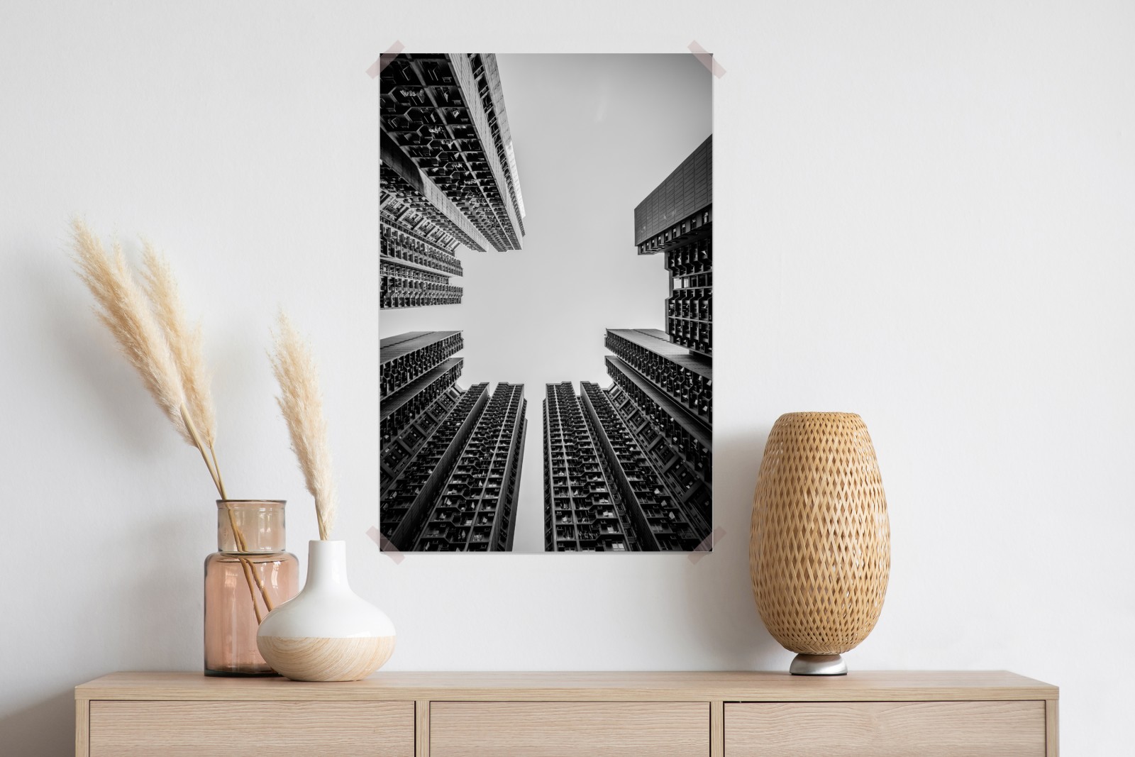 Dodaj intensywny czarno-biały obraz architektury, który wprowadzi miejską geometrię i dramatyczną perspektywę do twojego wnętrza.