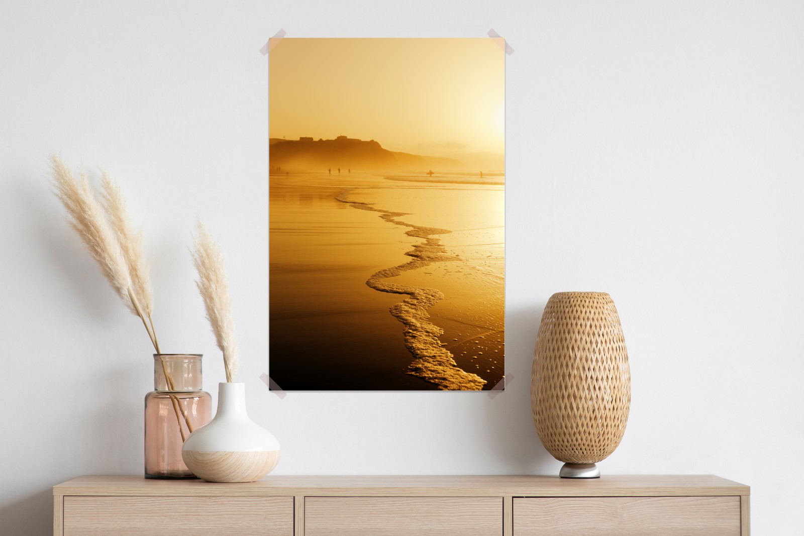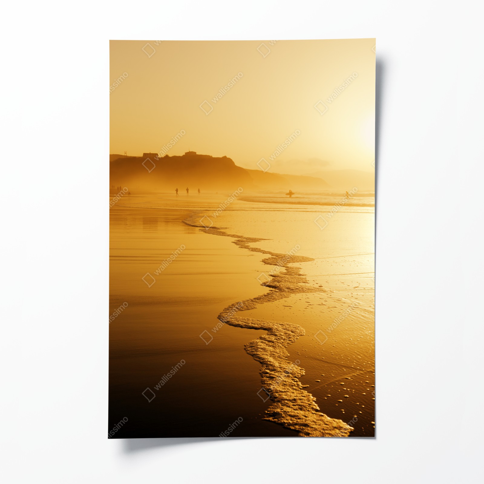 Plakat Złoty zachód słońca na plaży w Sopelanie