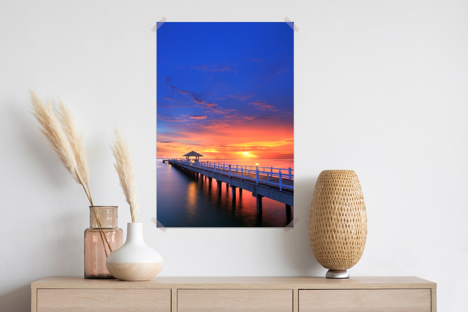 Wprowadź spokojną nadmorską atmosferę do wnętrza dzięki intensywnemu zachodowi słońca nad drewnianym molem.