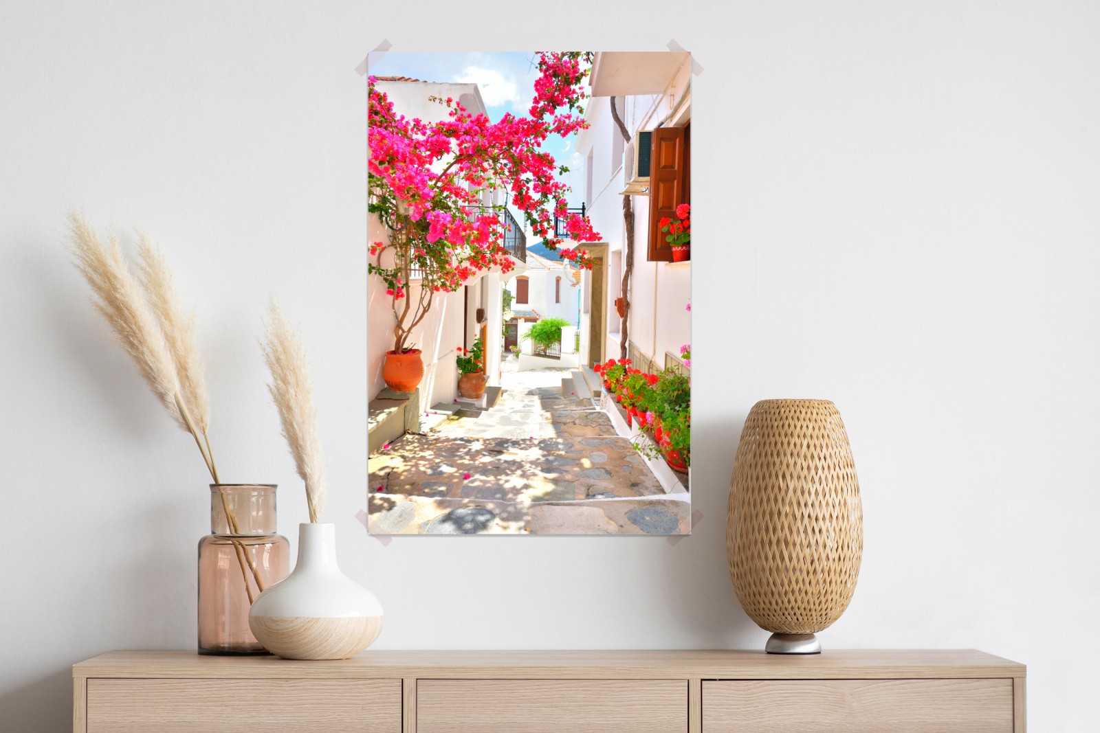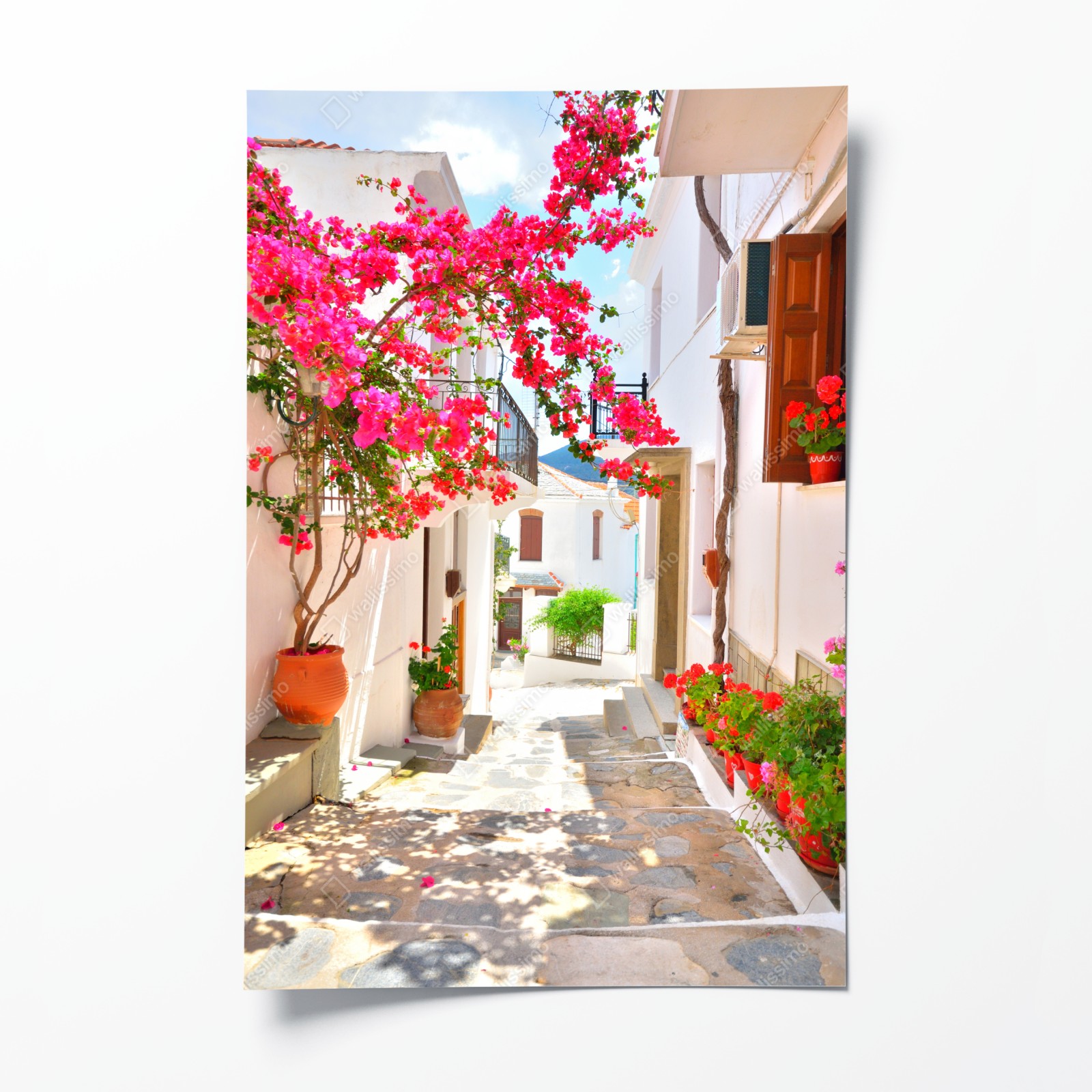 Plakat Słoneczny zaułek śródziemnomorski z bugenwillą