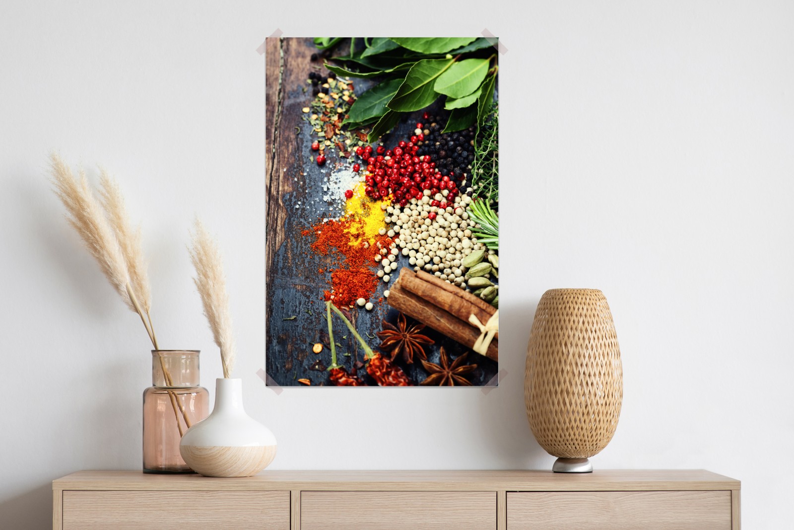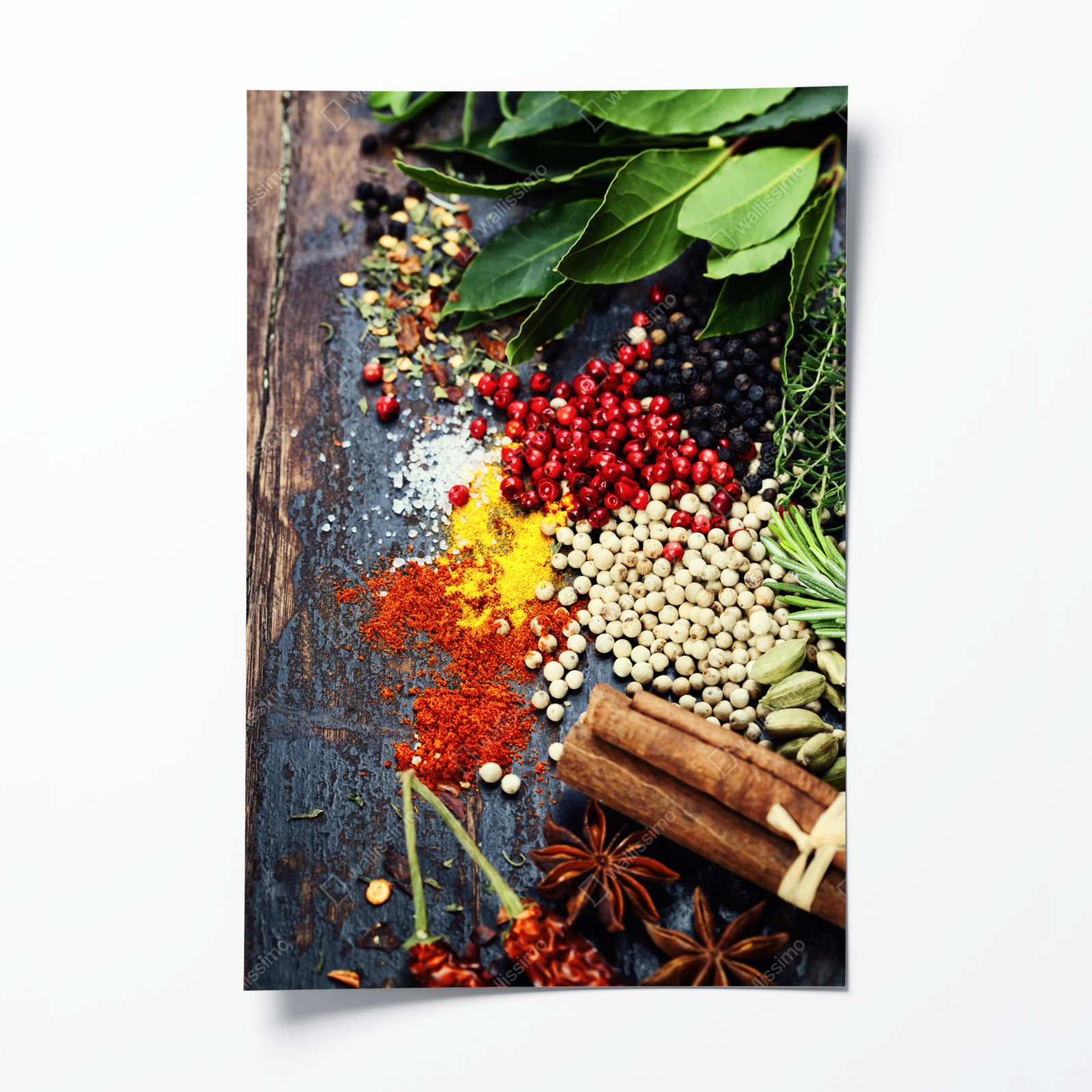 Plakat Intensywny zestaw przypraw na rustykalnym drewnie