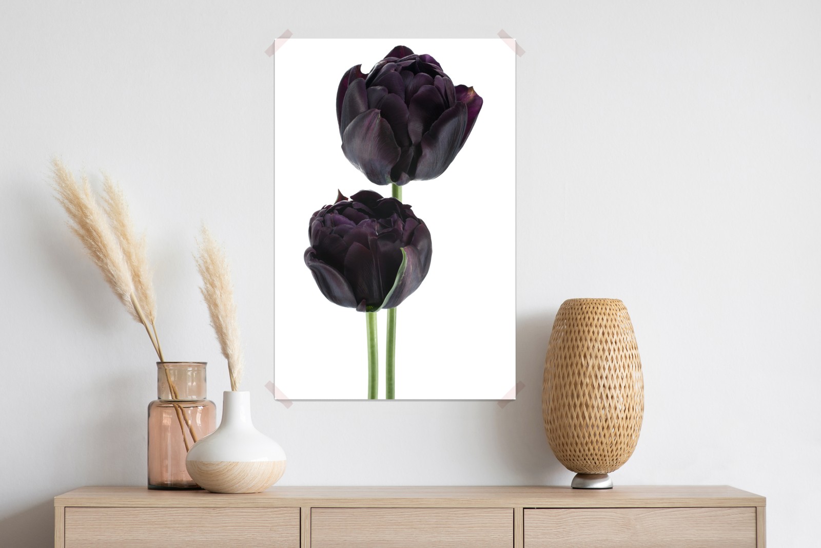 Plakat ciemne fioletowe tulipany na białym tle – Wallissimo®