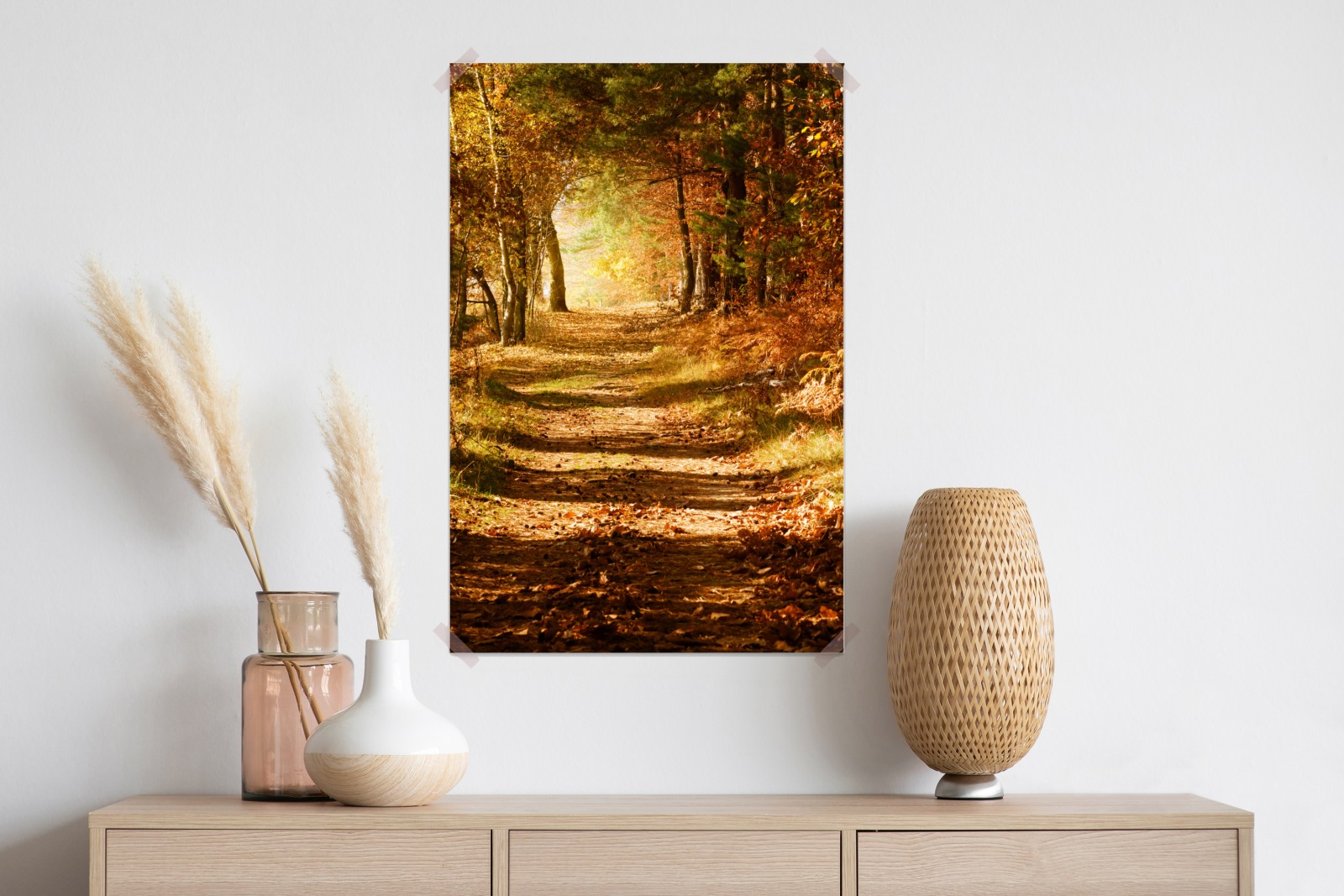 Plakat jesienna leśna ścieżka ze złotym światłem – Wallissimo®