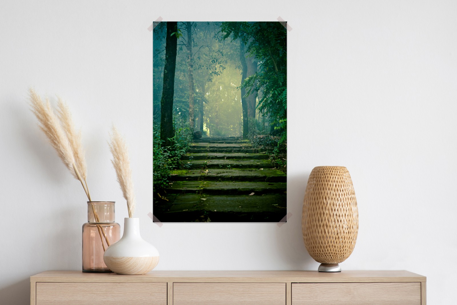 Wejdź na spokojne, mchowe kamienne schody prowadzące przez mglisty las i wprowadź do wnętrza naturalną, relaksującą atmosferę.