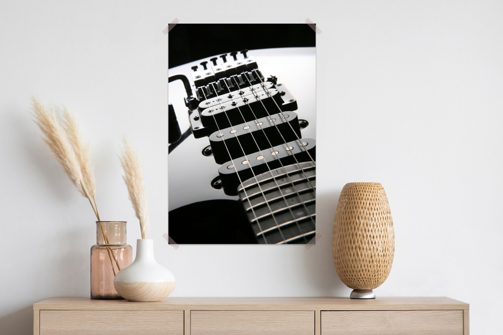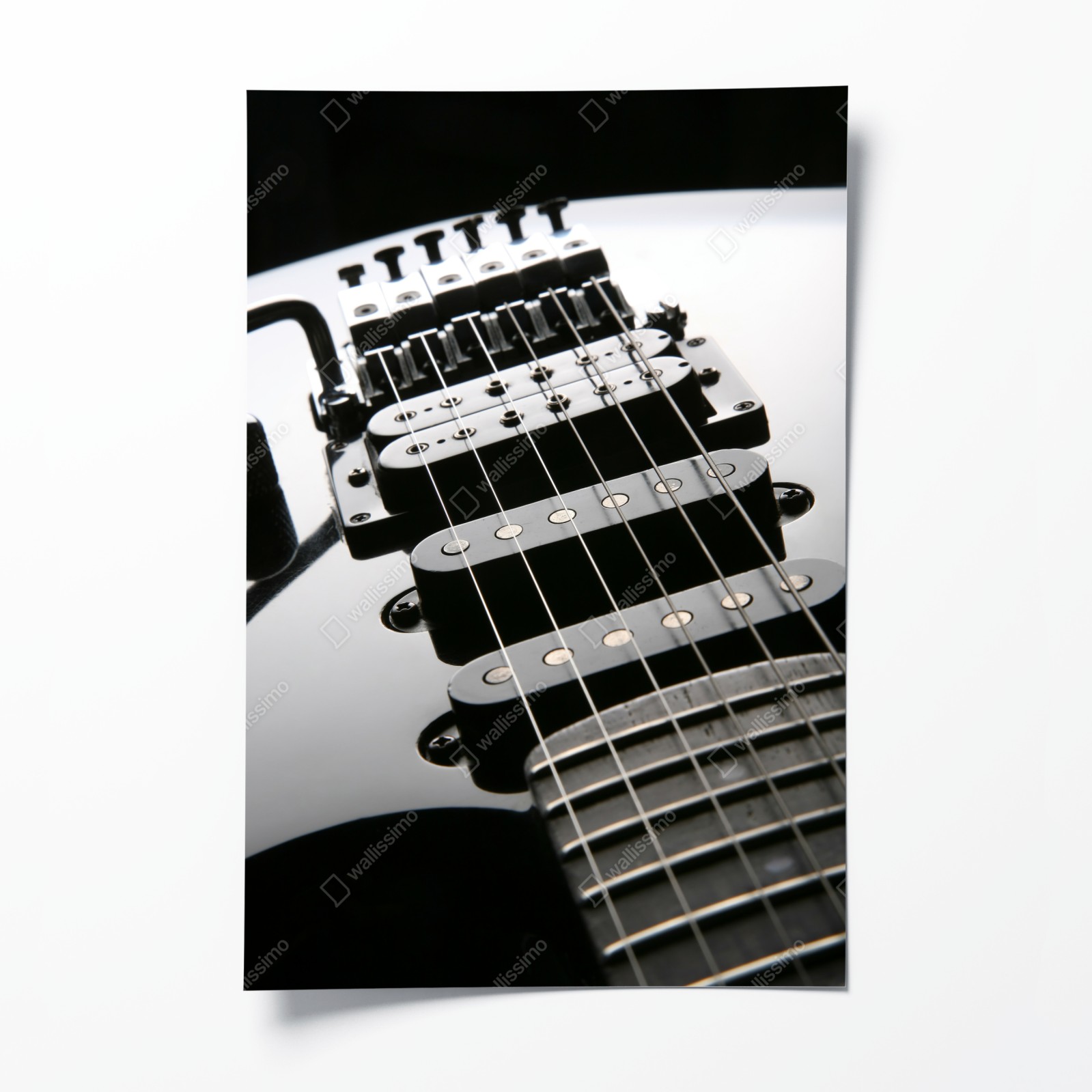 Plakat Zbliżenie czarnej gitary elektrycznej