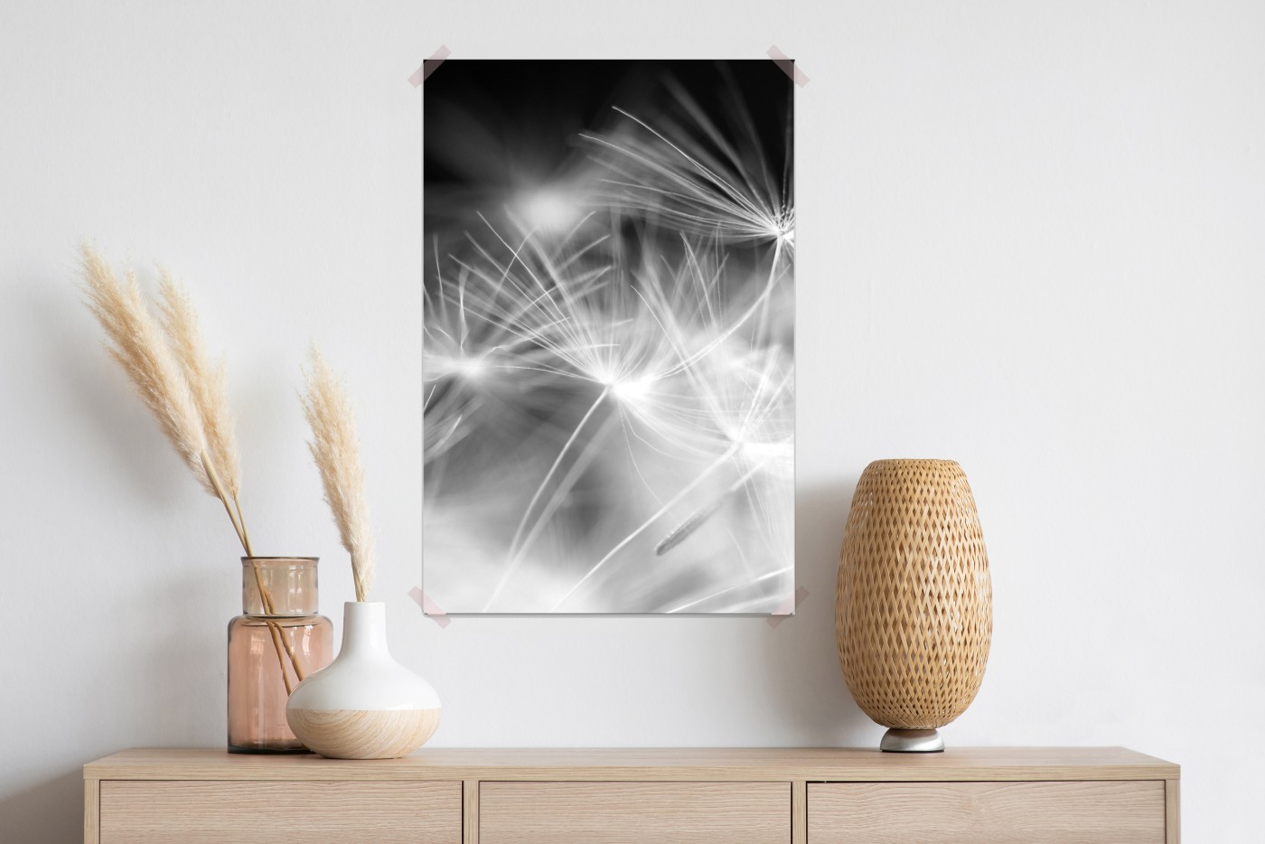 Plakat Delikatne nasiona dmuchawca czarno-białe